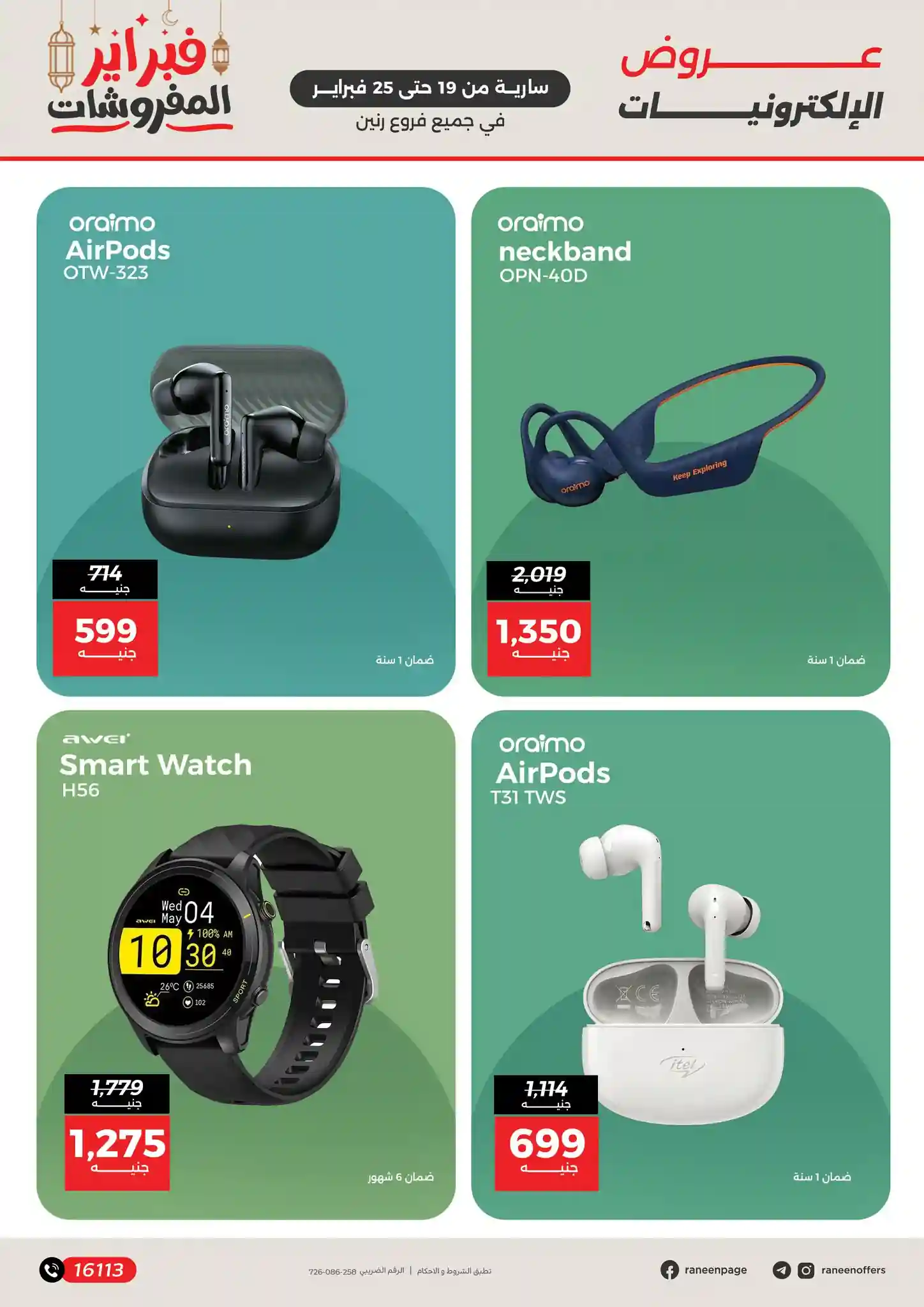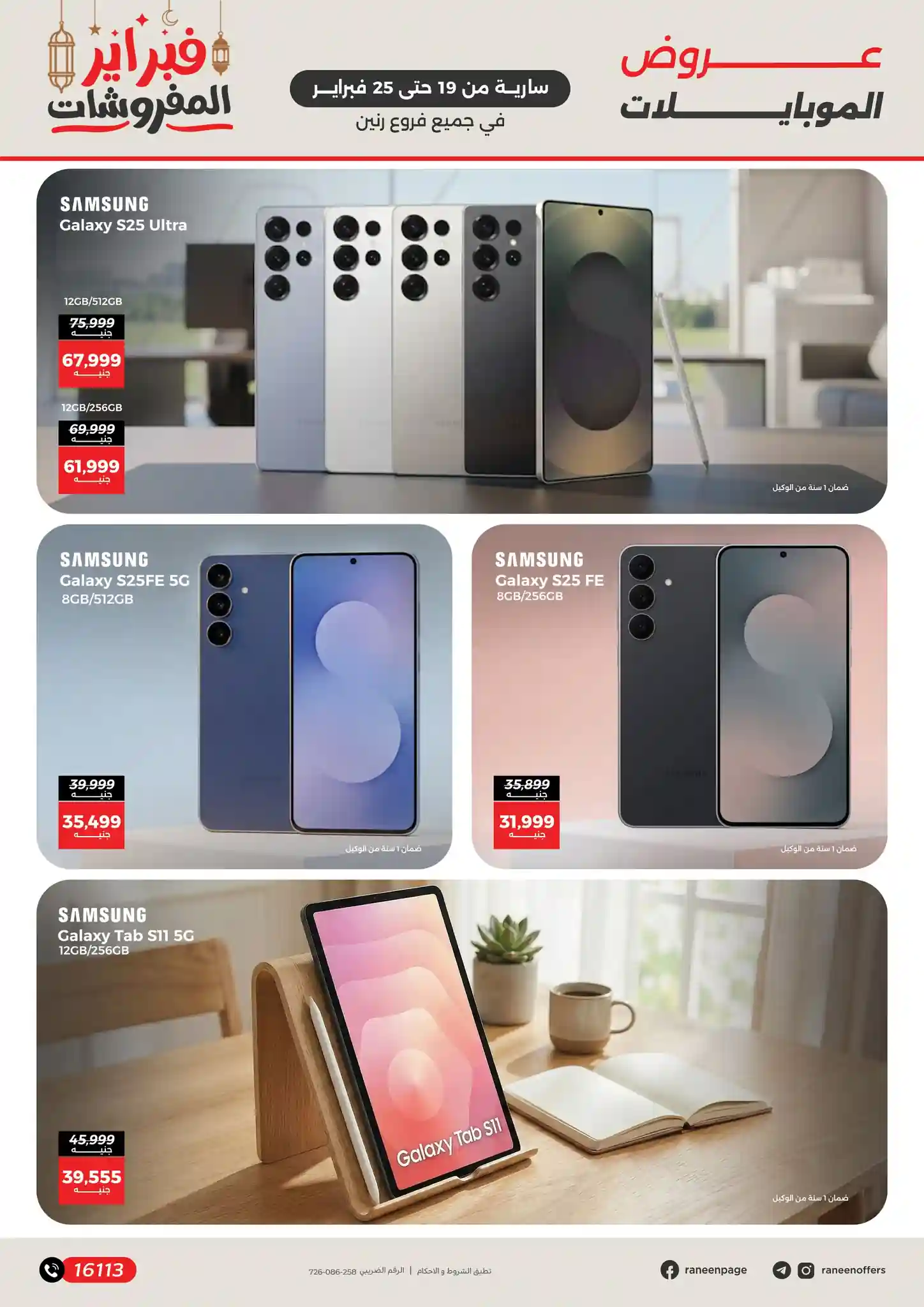 عروض رنين اليوم 19 فبراير حتى 25 فبراير 2026 تخفيضات الموبايلات و الاكسسوارات بجميع فروع رنين