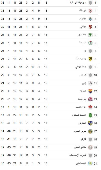 بينما احتل الأهلي المركز الرابع فى جدول الدورى الممتاز، برصيد 30 نقطة بعدما خاض 15 مباراة، فاز في 8 مواجهات، وتعادل في 6 ، وخسر واحدة، ويحل نادي المصري خامسا برصيد 25 نقطة ومن بعده في المركز السادس، وبنفس الرصيد يأتي سموحة برصيد 25 نقطة، ثم نادي زد في المركز السابع برصيد 24 نقطة وفي المركز الثامن وادي دجلة برصيد 24 نقطة.
