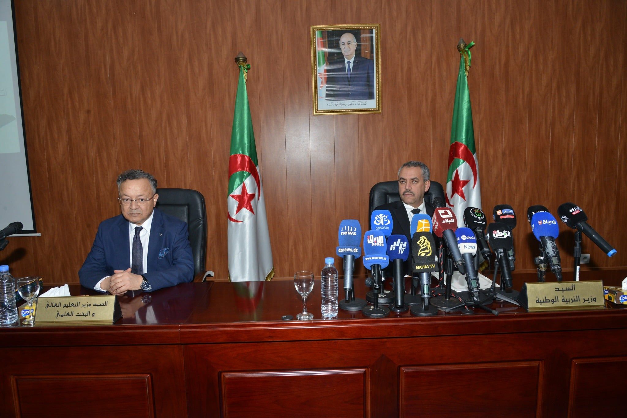 أشرف وزير التربية الوطنية، الدكتور محمد صغير سعداوي، مساء اليوم الأربعاء 18 فيفري 2026، بمقر الوزارة بالمرادية، رفقة وزير التعليم العالي والبحث العلمي، كمال بداري، على مراسم توقيع اتفاقية إطار للتعاون والشراكة بين وزارة التربية الوطنية ووزارة التعليم العالي والبحث العلمي، إضافة إلى التوقيع على خمس اتفاقيات تعاون بين القطاعين، وذلك بحضور إطارات من الوزارتين وممثلي الهيئات والمؤسسات المعنية.