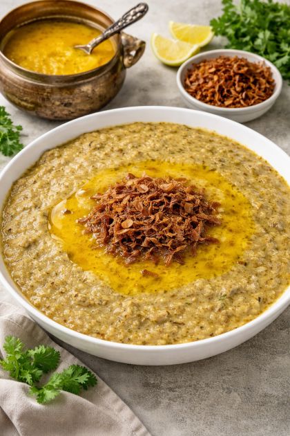* تُزيّن بالبصل المقلي.