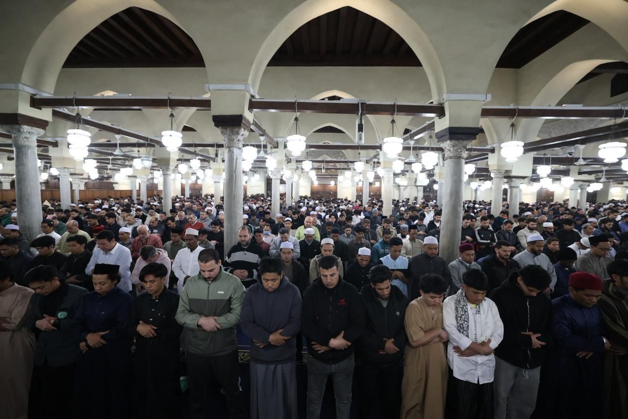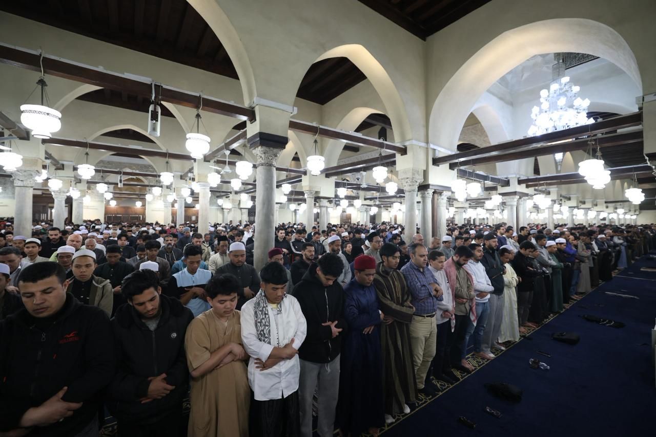 المصلون فى الجامع الأزهر