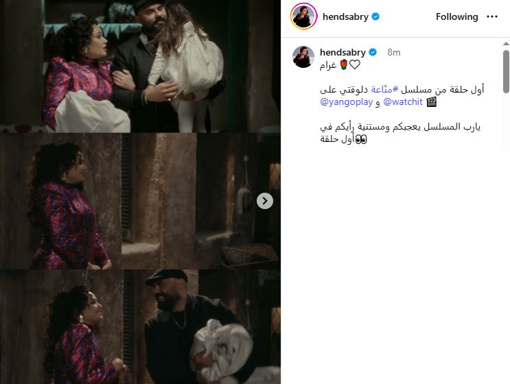 ونشرت هند، عبر حسابها على انستجرام، صورا من الحلقة الأولى للمسلسل، صحبتها قائلة: "غرام.. يارب المسلسل يعجبكم ومستنية رأيكم في أول حلقة".
