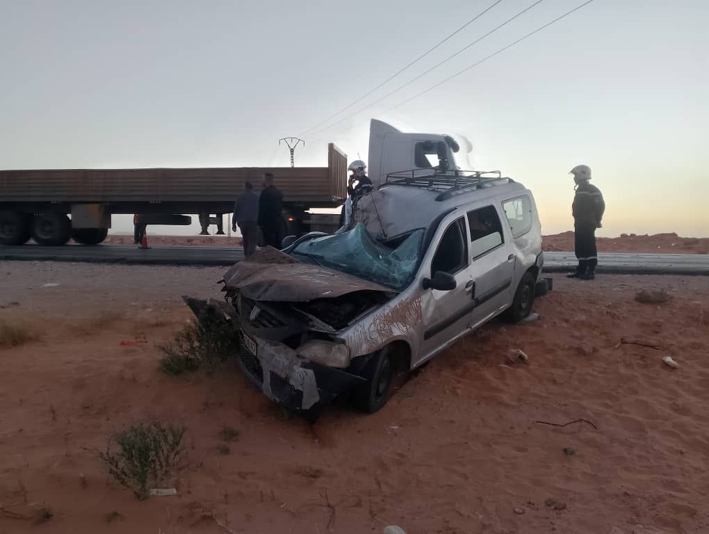 الحادث تمثل في انحراف واصطدام سيارة سياحية بشاحنة ذات مقطورة، ما أسفر عن إصابة 5 أشخاص، تتراوح أعمارهم بين 12 و 62 سنة، بجروح متفاوتة الخطورة.