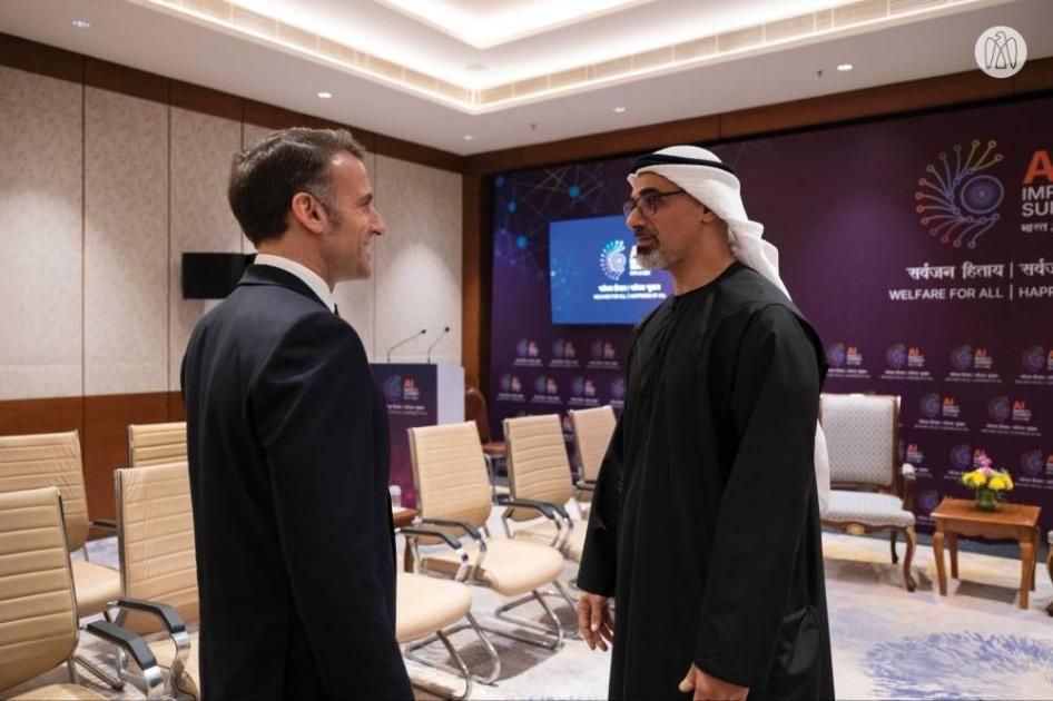 التقى سموّ الشيخ خالد بن محمد بن زايد آل نهيان، ولي عهد أبوظبي، إيمانويل ماكرون، رئيس الجمهورية الفرنسية، على هامش انعقاد أعمال قمة تأثير الذكاء الاصطناعي، في العاصمة الهندية نيودلهي.