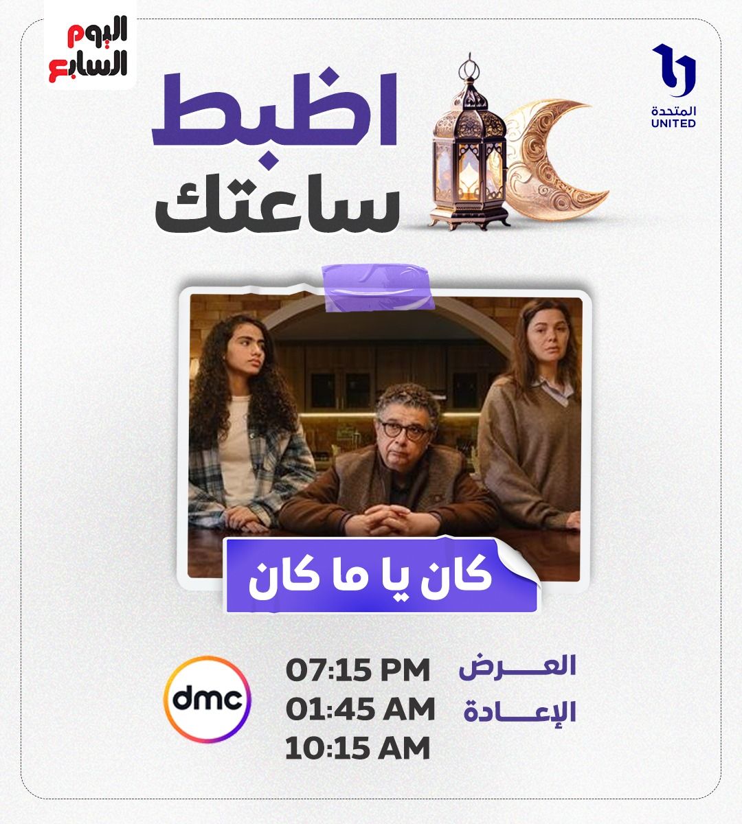 الخميس، 19 فبراير 2026 06:00 ميعرض مسلسل كان ياما كان الحلقة 2، بطولة النجم ماجد الكدواني، ضمن مسلسلات رمضان 2026، حصرياً على قناة DMC وDMC دراما.
