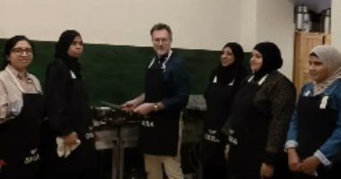 وظهر السفير شانون مع مجموعة من السيدات وهو يقوم بإعداد وجبة ساخنة بالبط مع مطبخ أوكر فى مدينة إسنا بصعيد مصر.