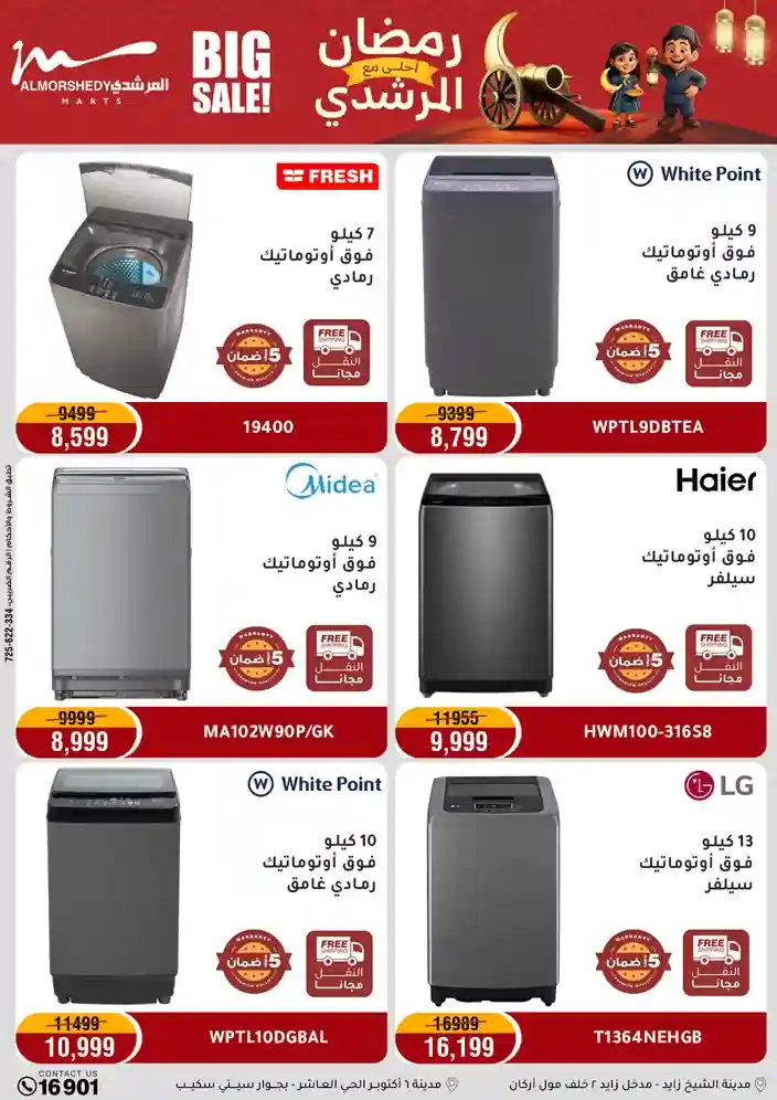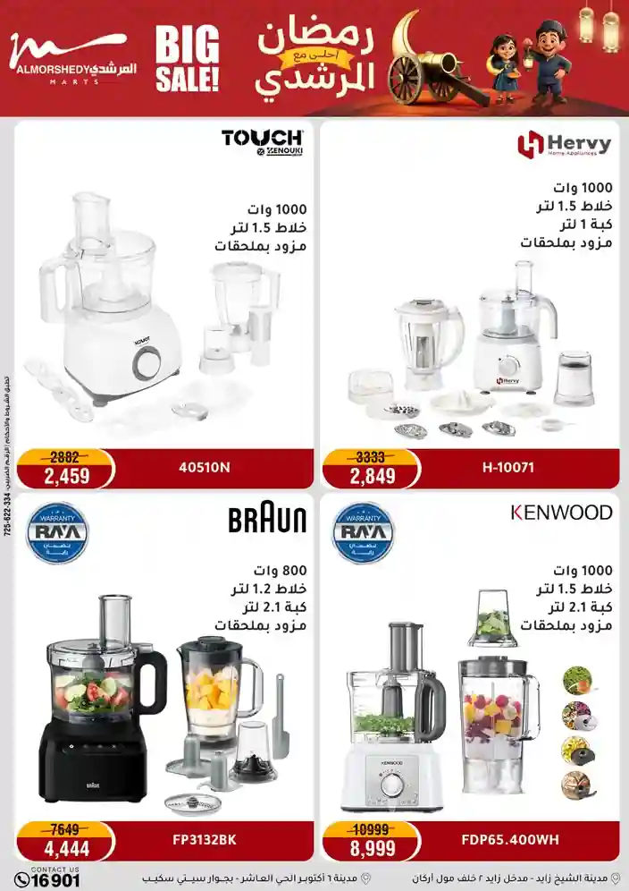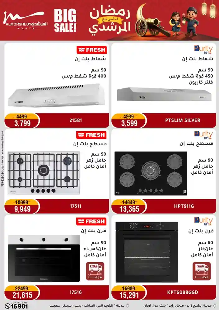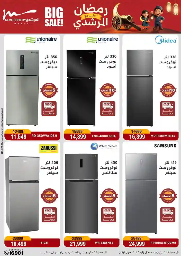 عروض جديدة من أسواق المرشدي مع اكبر مهرجان للتخفيضات في مصر خصومات حتى 70% وقسط براحتك بدون فوائد بأسعار العروض المخفضة على 12 شهر لحاملي بطاقة ائتمان CIB أو قسط براحتك مع VALU بدون مقدم حتى 60 شهر أو بدون مقدم وبدون فوائد مع نظام هاتريك وكمان النقل مجاني للقاهرة والجيزة والقليوبية على قسم الأجهزة الكهربائية والموبيليا والمراتب ( تطبق شروط المكان ) خصومات على جميع الأقسام أدوات منزلية – اجهزة كهربائية – مفروشات – موبيليا – نجف – سجاد – مراتب – ملابس رجالي وحريمي وأطفالي ومستلزمات ولعب الأطفال وجاليري وأقسام تانية كتير استمتع بالتسوق في أسواق المرشدي مع أكتر من 12 قسم و أكثر من 10,000 منتج يعني كل اللي بتحلم بيه عند المرشدي هتلاقيه