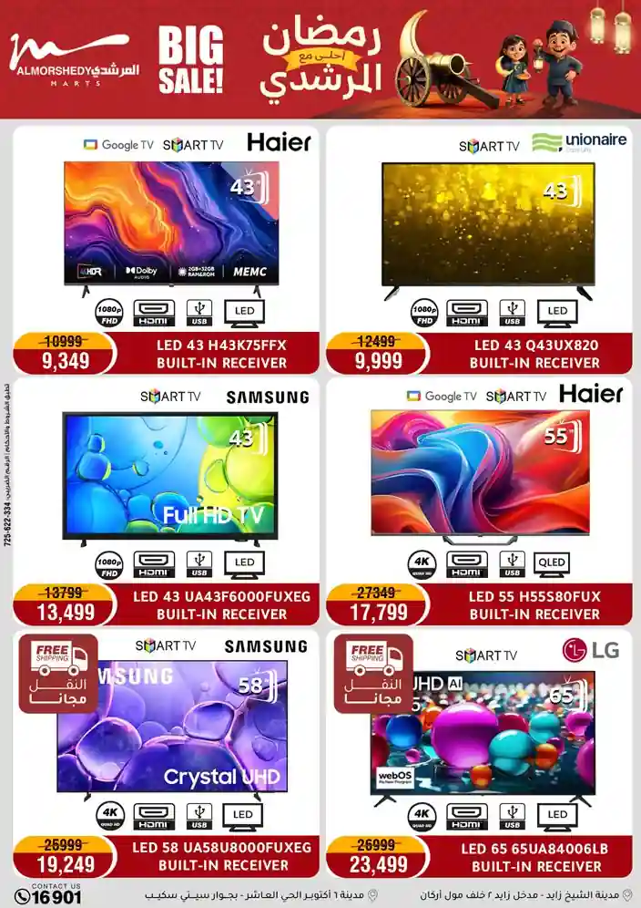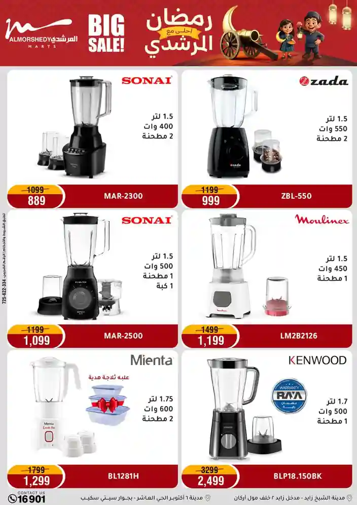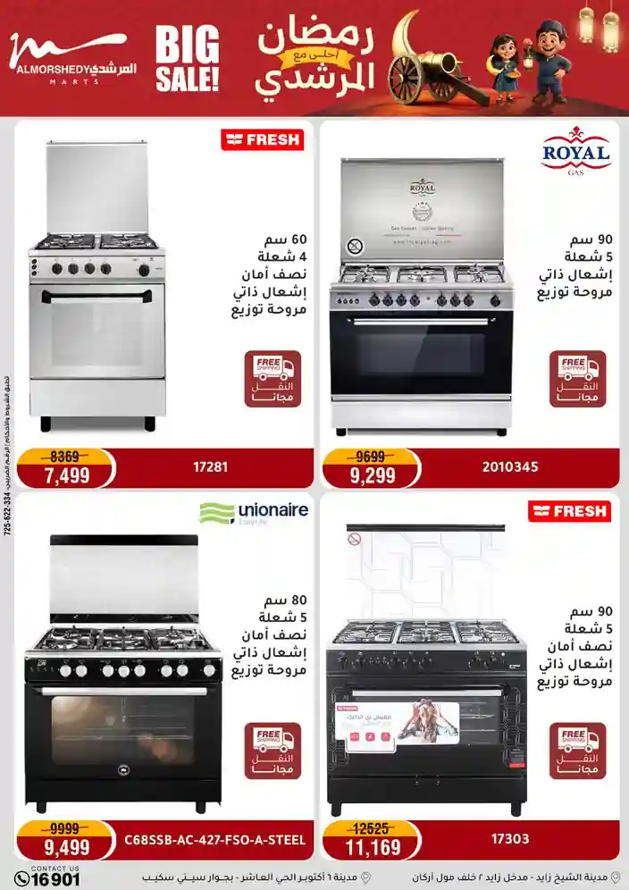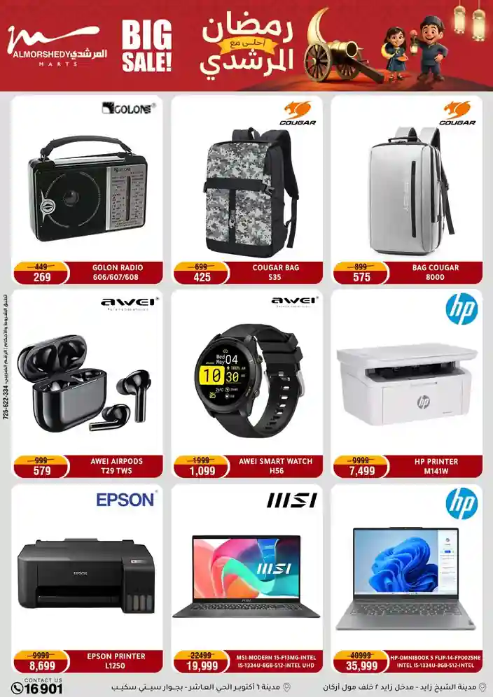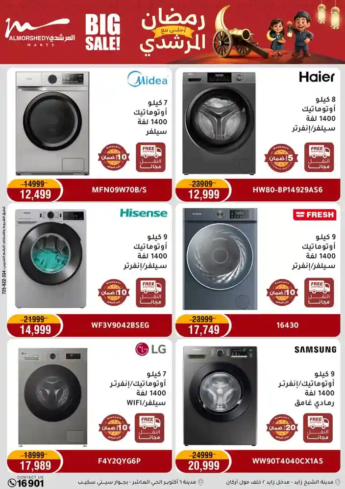 عروض جديدة من أسواق المرشدي مع اكبر مهرجان للتخفيضات في مصر خصومات حتى 70% وقسط براحتك بدون فوائد بأسعار العروض المخفضة على 12 شهر لحاملي بطاقة ائتمان CIB أو قسط براحتك مع VALU بدون مقدم حتى 60 شهر أو بدون مقدم وبدون فوائد مع نظام هاتريك وكمان النقل مجاني للقاهرة والجيزة والقليوبية على قسم الأجهزة الكهربائية والموبيليا والمراتب ( تطبق شروط المكان ) خصومات على جميع الأقسام أدوات منزلية – اجهزة كهربائية – مفروشات – موبيليا – نجف – سجاد – مراتب – ملابس رجالي وحريمي وأطفالي ومستلزمات ولعب الأطفال وجاليري وأقسام تانية كتير استمتع بالتسوق في أسواق المرشدي مع أكتر من 12 قسم و أكثر من 10,000 منتج يعني كل اللي بتحلم بيه عند المرشدي هتلاقيه