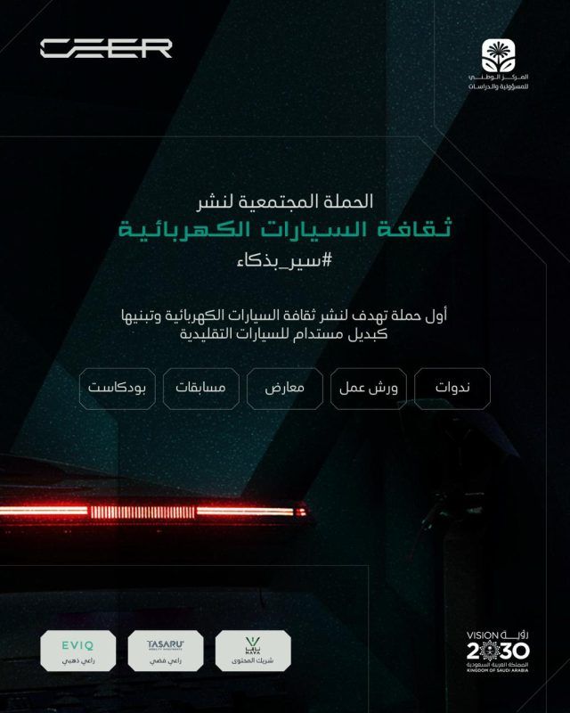 تزامنًا مع حلول شهر رمضان المبارك، تنطلق الحملة المجتمعية لنشر ثقافة السيارات الكهربائية تحت عنوان #سير_بذكاء، والتي تستمر على مدار 6 أشهر، وذلك بالشراكة مع شركة “سير” بصفتها راعيًا رئيسيًا لهذا الحدث الوطني الرائد.