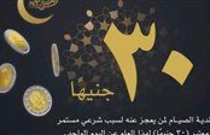أعلنت دار الإفتاء المصرية أن الحد الأدنى لفدية الفطر لعذر شرعي هذا العام قد حُدِّد بمبلغ 30 جنيهًا عن اليوم الواحد، وذلك لمن يعجز عن الصيام لعذر مستمر لا يُرجى زواله، ككبار السن أو أصحاب الأمراض المزمنة.