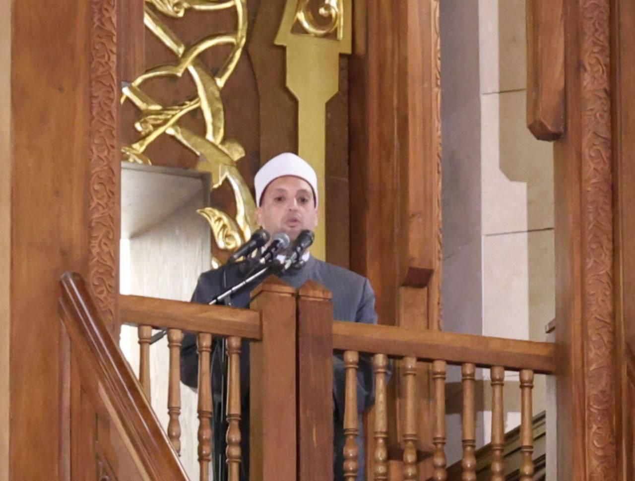 افتُتحت شعائر الجمعة بتلاوة قرآنية مباركة تلاها القارئ الشيخ محمدي بحيري، وألقى الخطبة الدكتور محمد رجب خليفة - رئيس الإدارة المركزية لشئون الدعوة، وجاءت تحت عنوان: «رمضان شهر الإرادة والكرم»، مؤكدًا فيها القيم الإيمانية والإنسانية التي يعززها شهر رمضان المبارك، ودوره في بناء الوعي وترسيخ معاني البذل والعمل، وامتلاك الإنسان قراره، وارتباط معاني العزيمة والثبات بالشهر الفضيل عند المسلمين عامة، وعند أهل مصر خاصة.