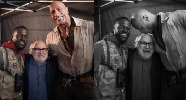 نشر جونسون مجموعة صور من كواليس العمل، ظهر في إحداها برفقة النجم كيفن هارت، بينما أظهرت صورة أخرى لحظة طريفة ومؤثرة وهو يقبّل رأس داني ديفيتو تعبيرًا عن تقديره ومحبةه للنجم المخضرم، وكتب جونسون: "هذا إعلان رسمي بانتهاء تصوير Jumanji مع النجم الوحيد داني ديفيتو. العمل معك والتعلم منك كان شرفًا كبيرًا، واعتبارك صديقًا سيبقى امتيازًا دائمًا."