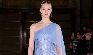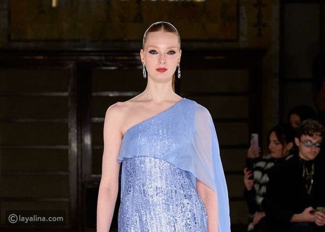 - كان اللون الأزرق الضبابي من أبرز ألوان المجموعة، حيث استُخدم في فساتين مزينة بطبقات من الترتر اللامع. كما ظهر الوردي الناعم في تصاميم أنثوية رقيقة، بينما أضفت درجات الشامبانيا لمسة من الفخامة الهادئة.