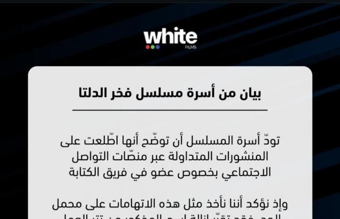 وأصدرت أسرة العمل بيانًا، أكدت فيه أنها تابعت ما يتم تداوله باهتمام بالغ، مشددة على أن مثل هذه الأمور يتم التعامل معها بمنتهى الجدية والمسئولية.