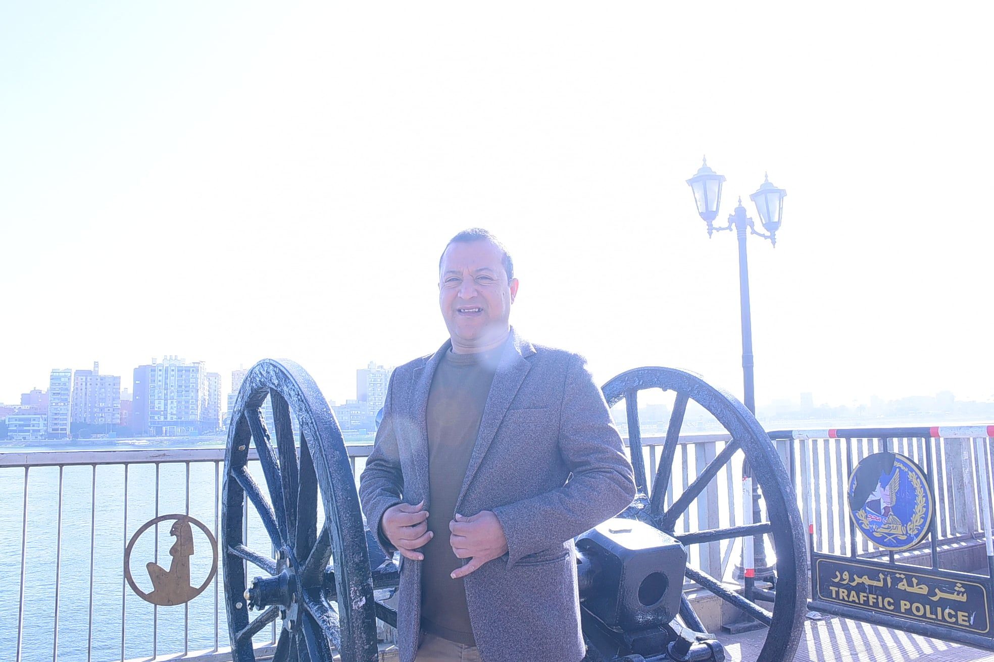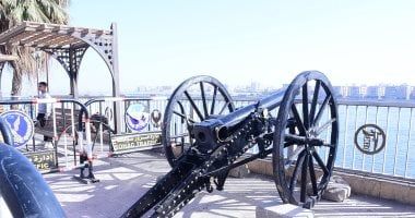 مينا شاب قبطى يلتقط صورة تذكارية مع المدفع