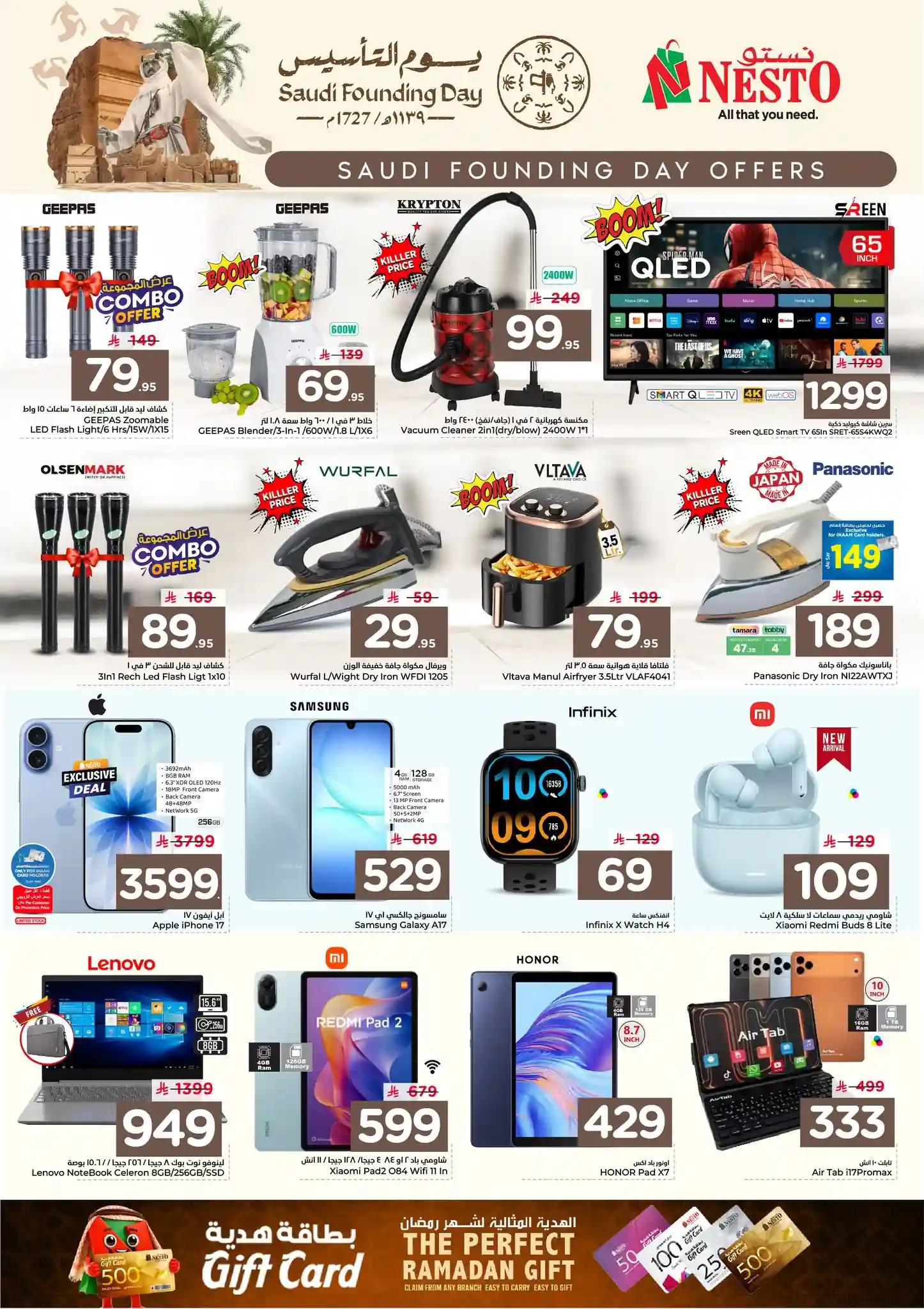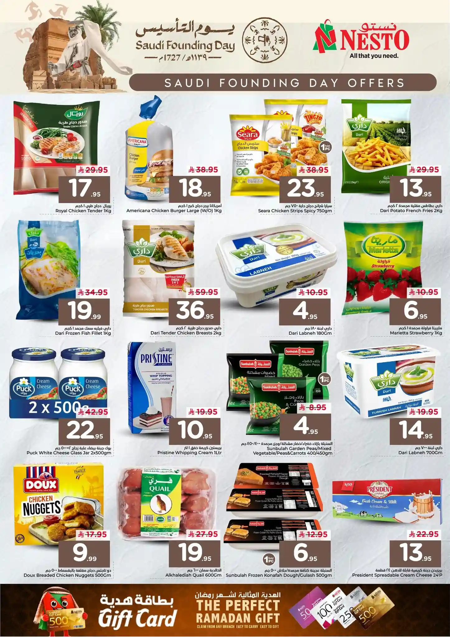 عروض نستو الرياض سارية من 22 فبراير حتى 24 فبراير 2026 يوم التأسيس فى فروع نستو الرياض و نستو البطحاء و نستو العزيزية و نستو المدينة الصناعية و نستو الملز و نستو الرس و نستو شقراء و نستو المجمعة و نستو فيلاجيو مول و نستو بريدة