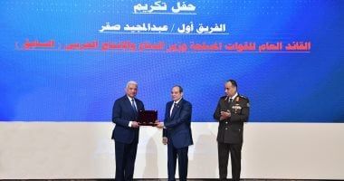السبت، 21 فبراير 2026 07:47 مشهد السيد الرئيس عبد الفتاح السيسي رئيس الجمهورية القائد الأعلى للقوات المسلحة، مساء اليوم السبت، حفل تكريم الفريق أول عبد المجيد صقر وزير الدفاع السابق، وذلك بحضور الفريق أشرف سالم زاهر القائد العام للقوات المسلحة وزير الدفاع والإنتاج الحربي، والفريق أحمد خليفة رئيس أركان حرب القوات المسلحة، وقادة الأفرع الرئيسية وعدد من قادة القوات المسلحة.