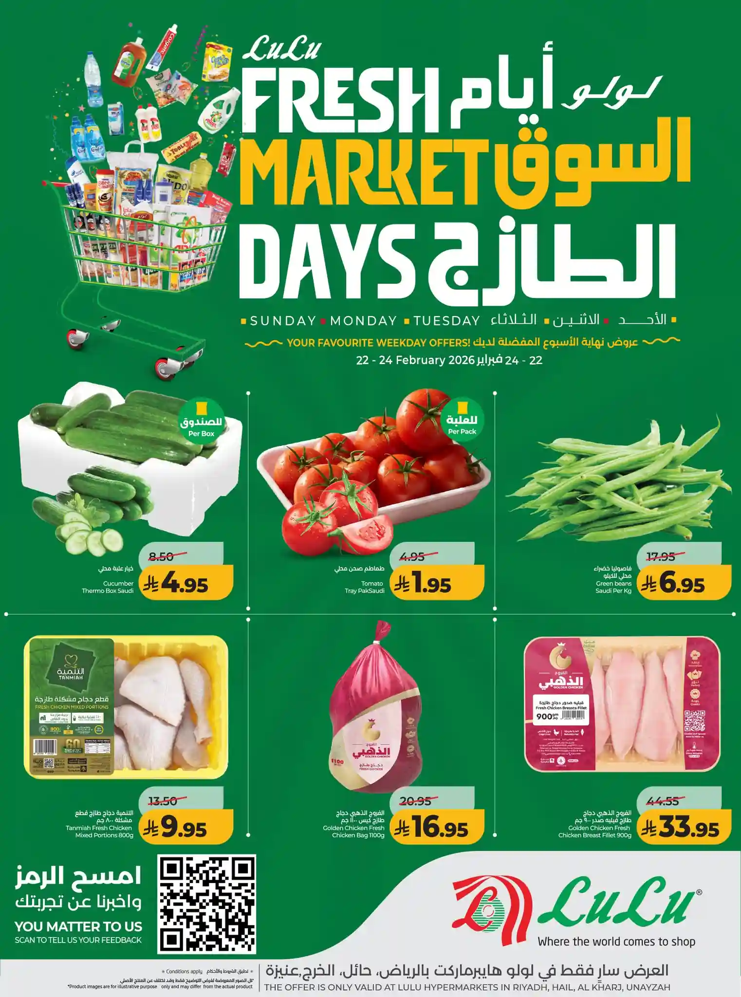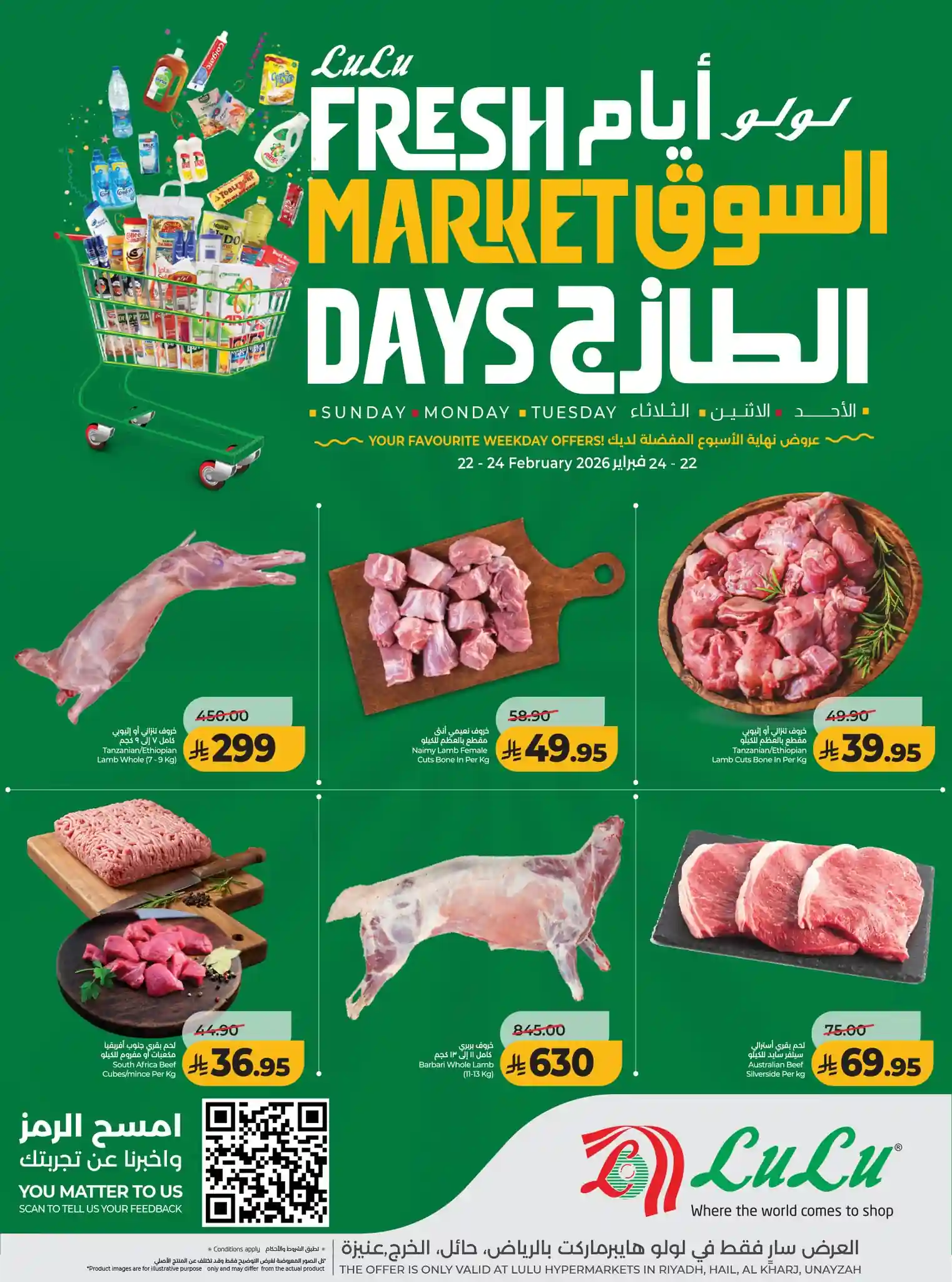 عروض لولو الرياض اليوم 22 فبراير حتى 24 فبراير 2026 ايام السوق الطازج