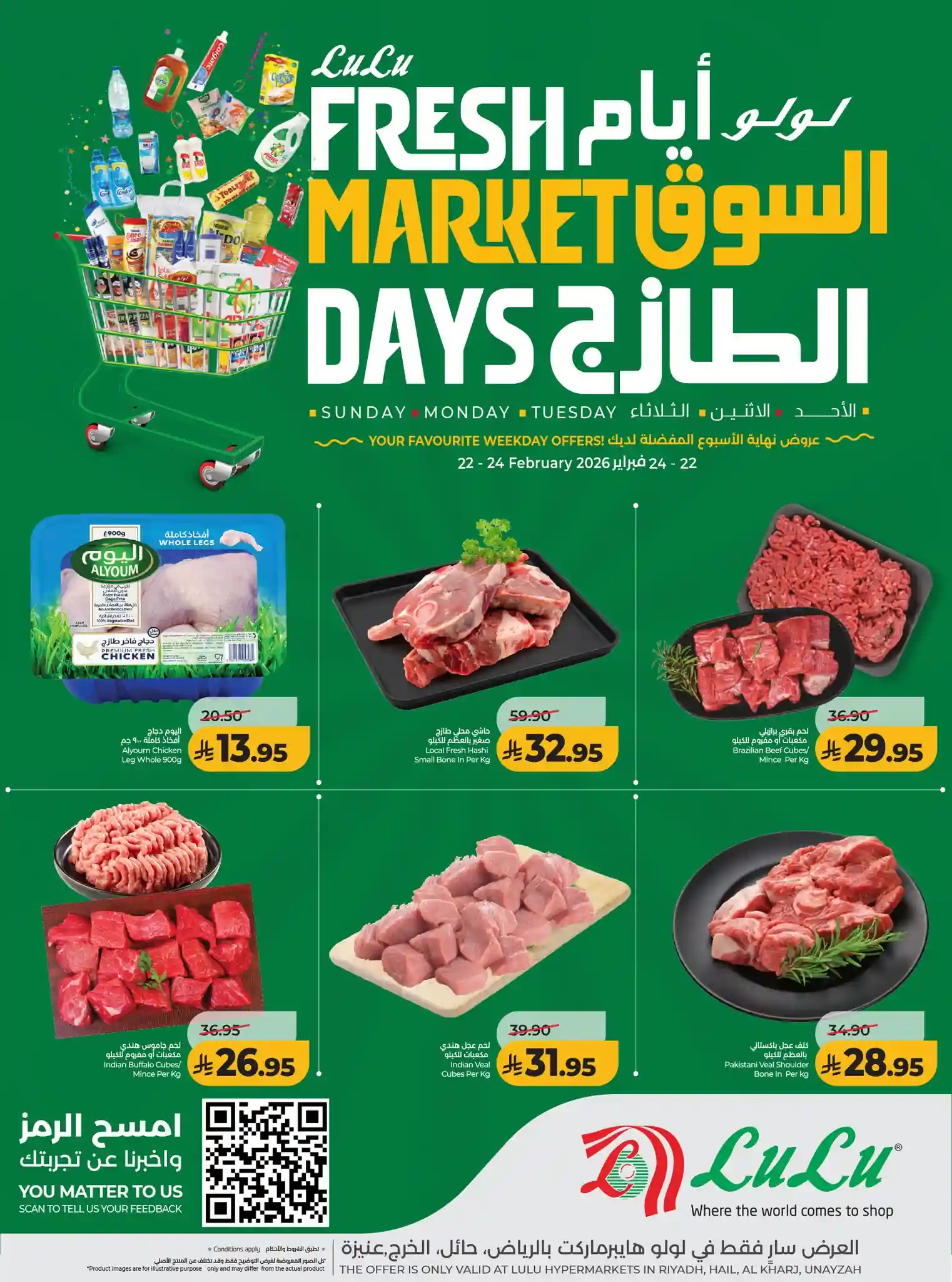 عروض نت تقدم لكم احدث عروض لولو الرياض اليوم الجديدة فى صفحة واحدة – العروض الاسبوعية من لولو هايبر ماركت – و ذلك من 22 فبراير حتى 24 فبراير 2026 ايام السوق الطازج و حتى نفاذ الكمية من لولو هايبر ماركت بجميع الفروع.