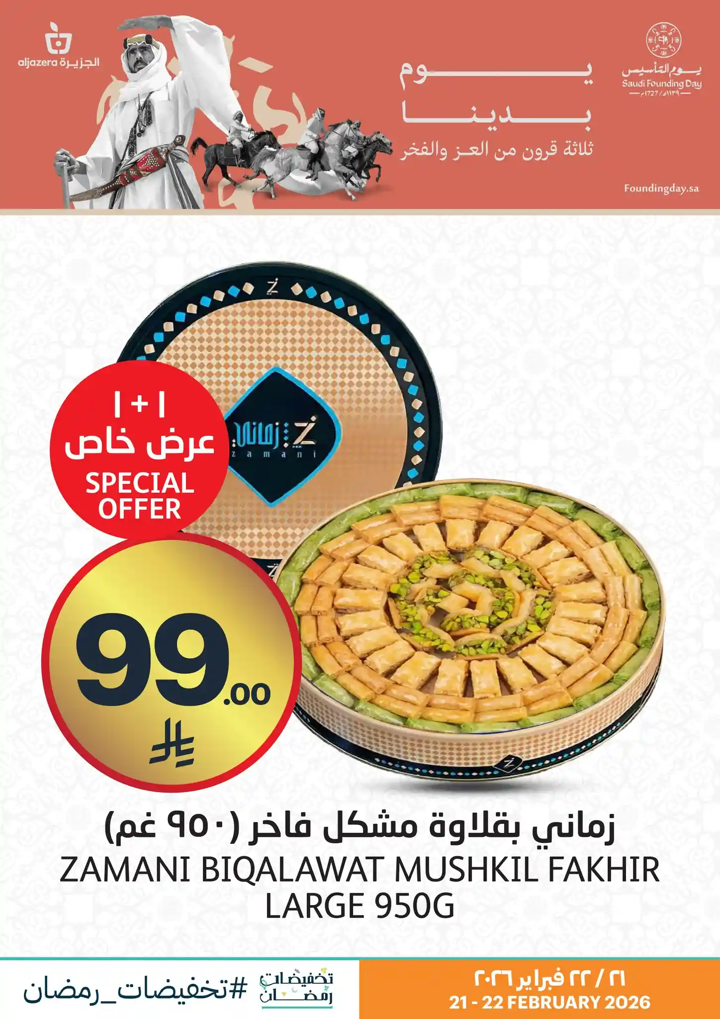 عروض اسواق الجزيرة السعودية اليوم 21 فبراير حتى 22 فبراير 2026 يوم التأسيس