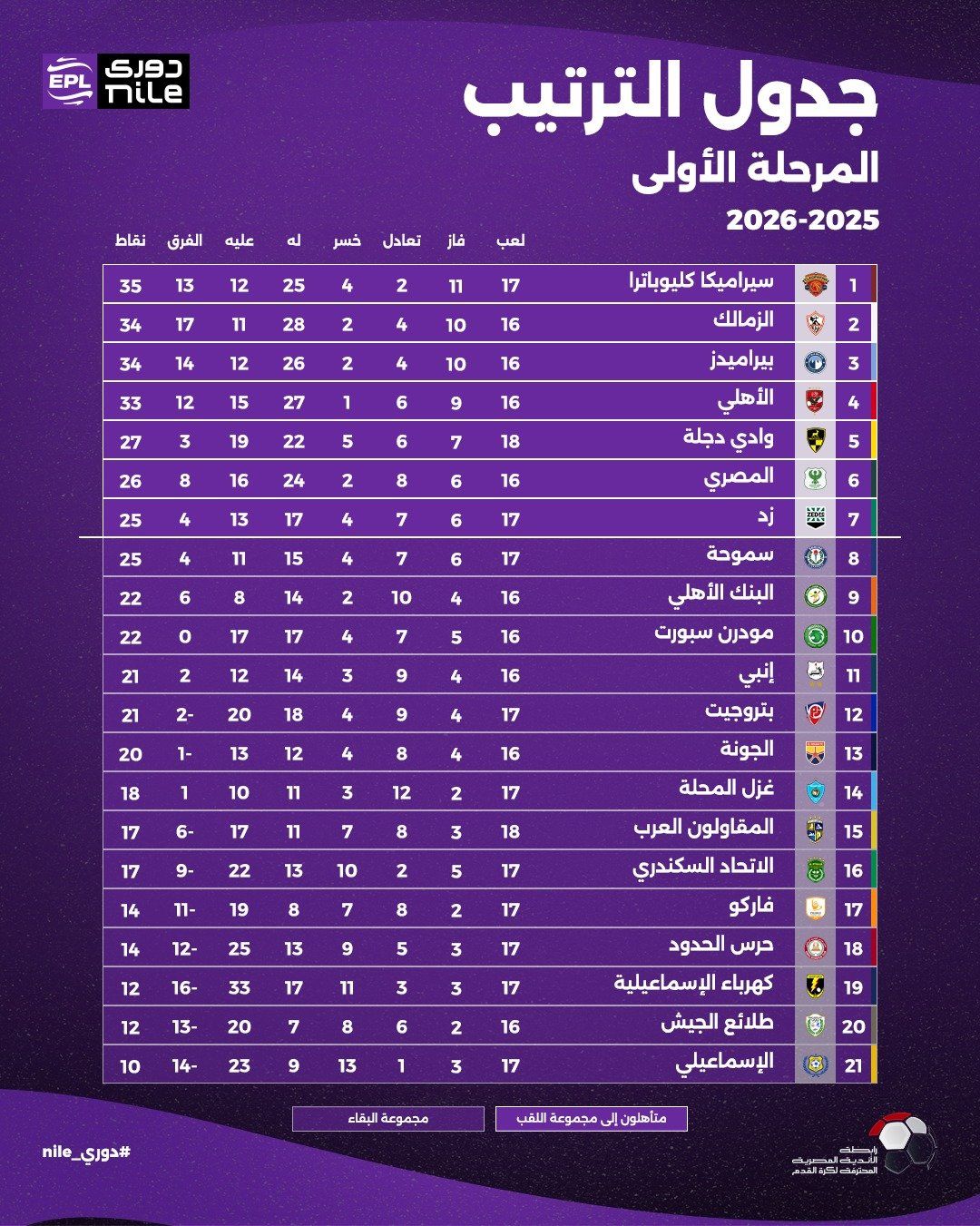 جدول ترتيب الدوري المصري