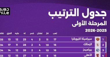 ترتيب الدوري المصري بعد فوز الزمالك وبيراميدزما زال سيراميكا متصدرًا لجدول ترتيب الدوري الممتاز برصيد 35 نقطة وبمواجهة إضافية عن الثلاثي الزمالك وبيراميدز والأهلي.