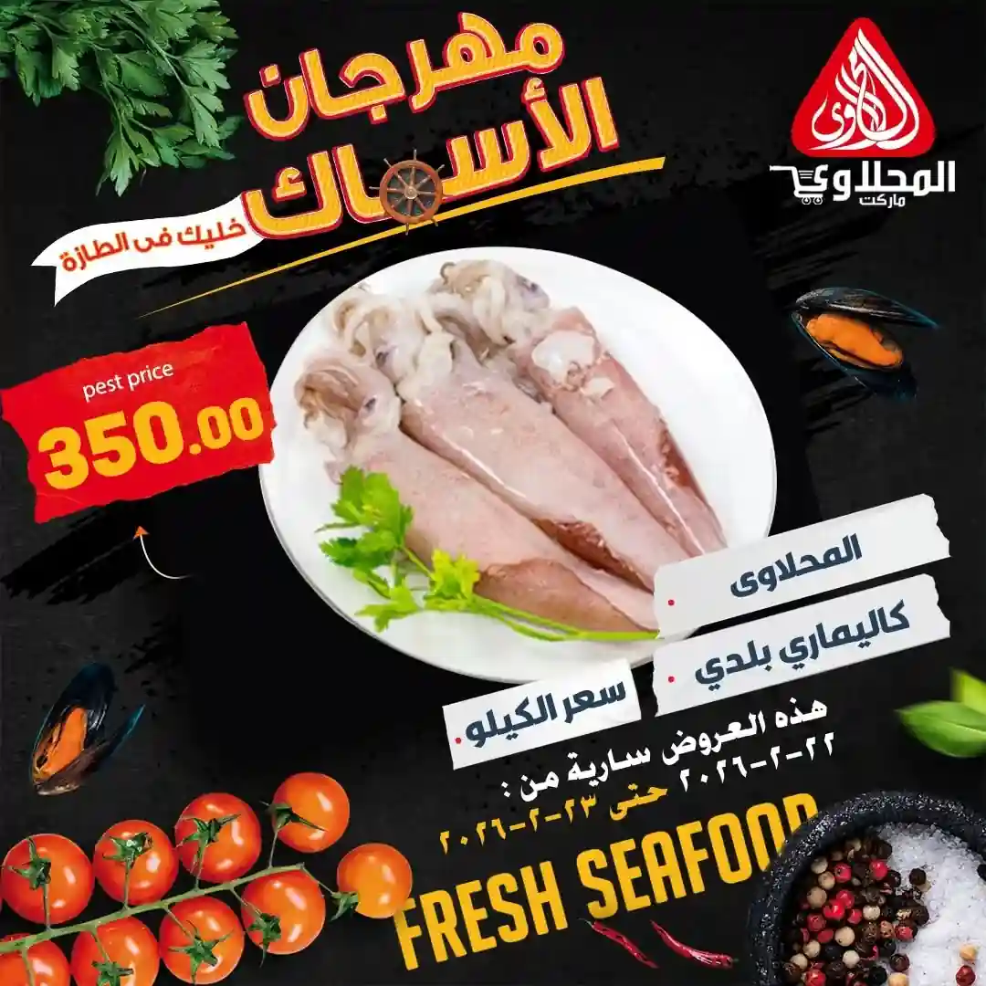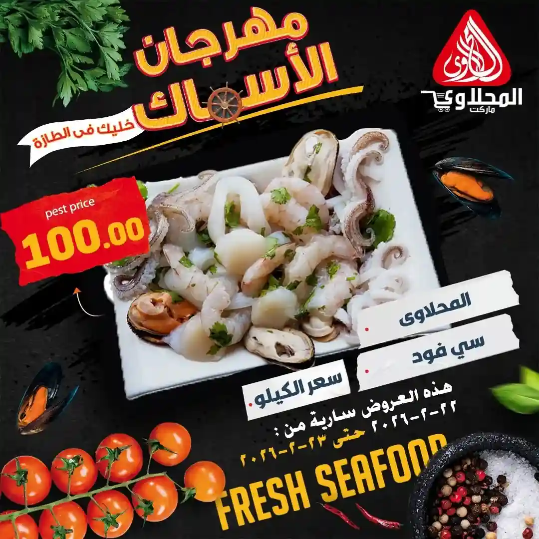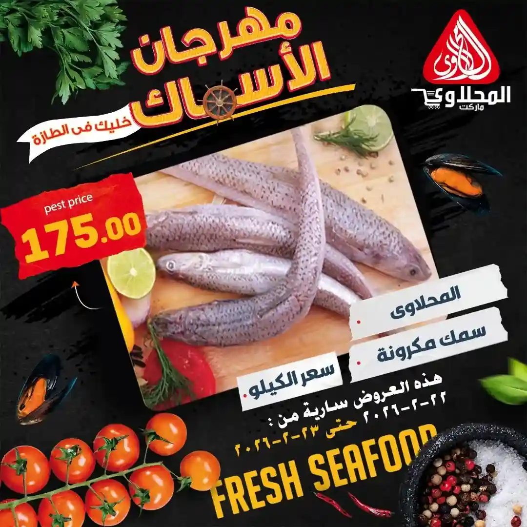 عروض المحلاوى ماركت اليوم 22 فبراير حتى 23 فبراير 2026 مهرجان الاسماك