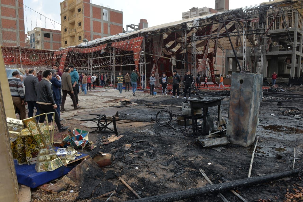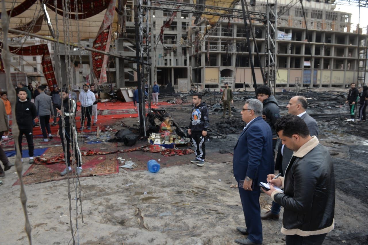محافظ الدقهلية يتفقد موقع حريق الخيمة الرمضانية