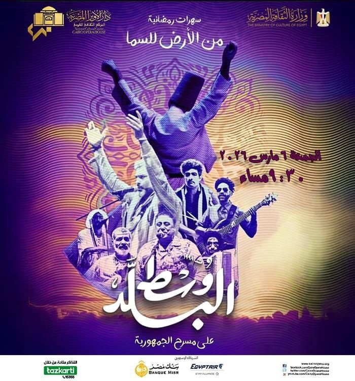 استمرارًا لفعاليات سهرة رمضانية تنظمها دار الأوبرا المصرية برئاسة الدكتورعلاء عبد السلام يقدم فريق وسط البلد حفلاً فى التاسعة ونص من مساء الجمعة 6 مارس المقبل 2026 على مسرح الجمهورية.يتضمن البرنامج مجموعة متميزة من الأعمال الخاصة بالفريق والتى حققت نجاحًا كبيرًا باعتبارها معالجات فنية مبتكرة لقضايا الشباب المعاصر منها قربيلى، وسط البلد، أنتيكا، هيلاهوب، عم مينا، مجنون، اتكلمى، بإمكان، شمس النهار وغيره.