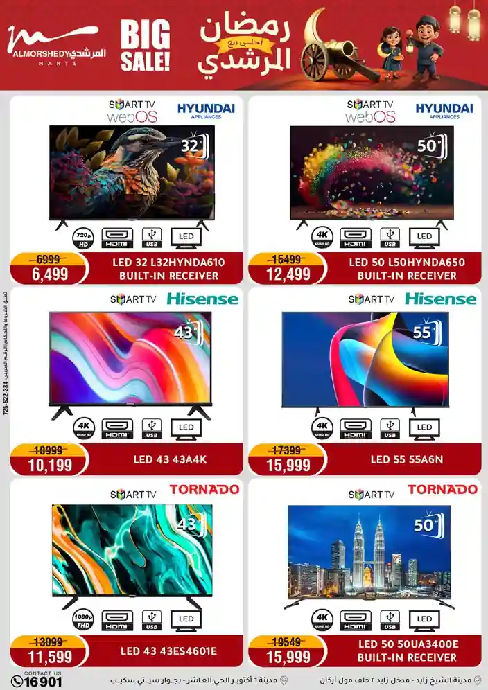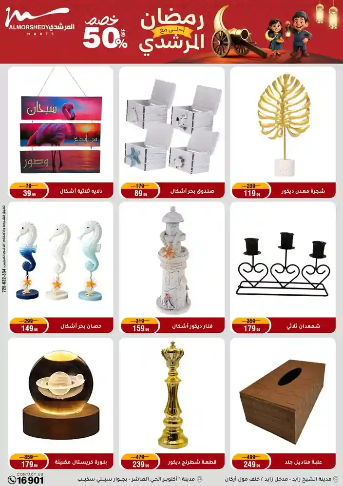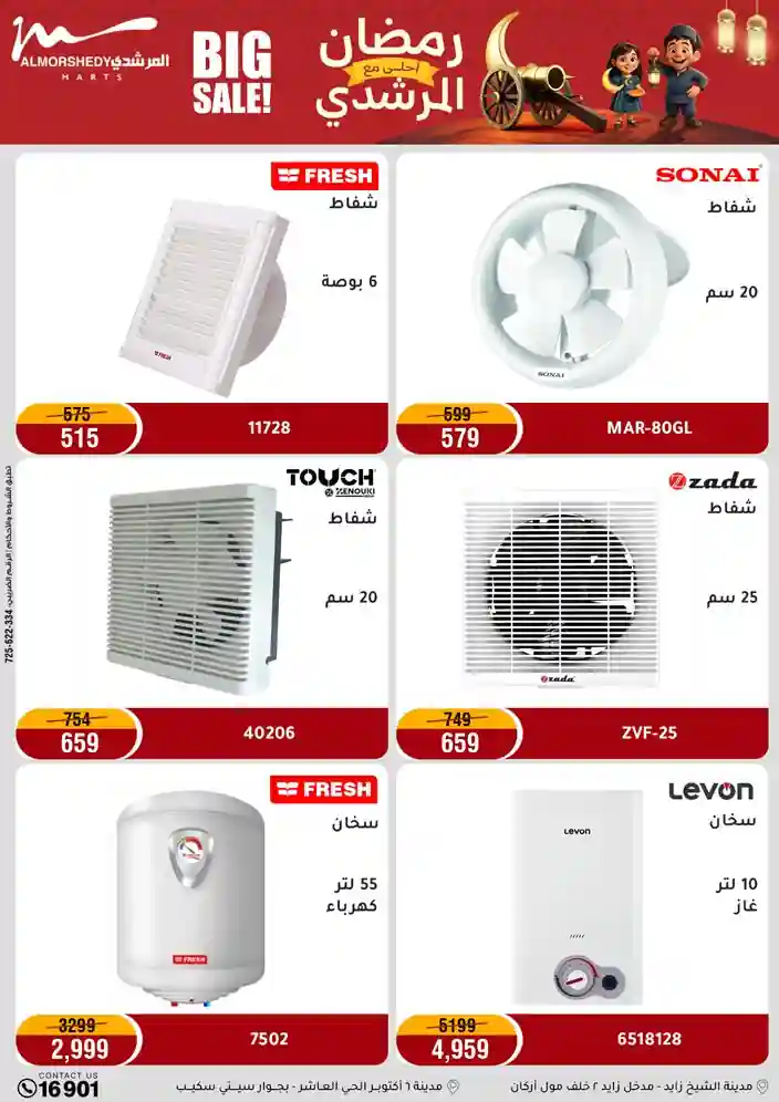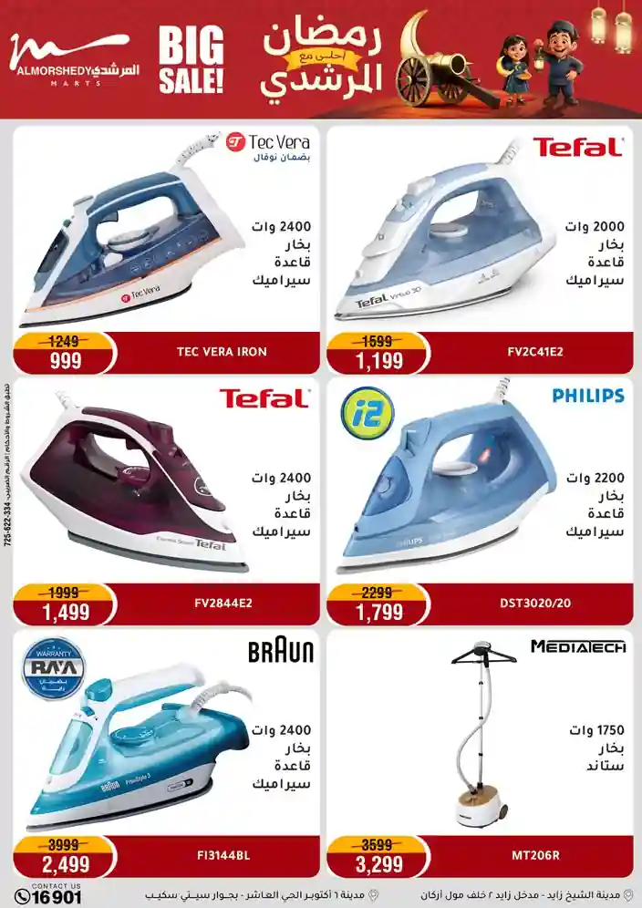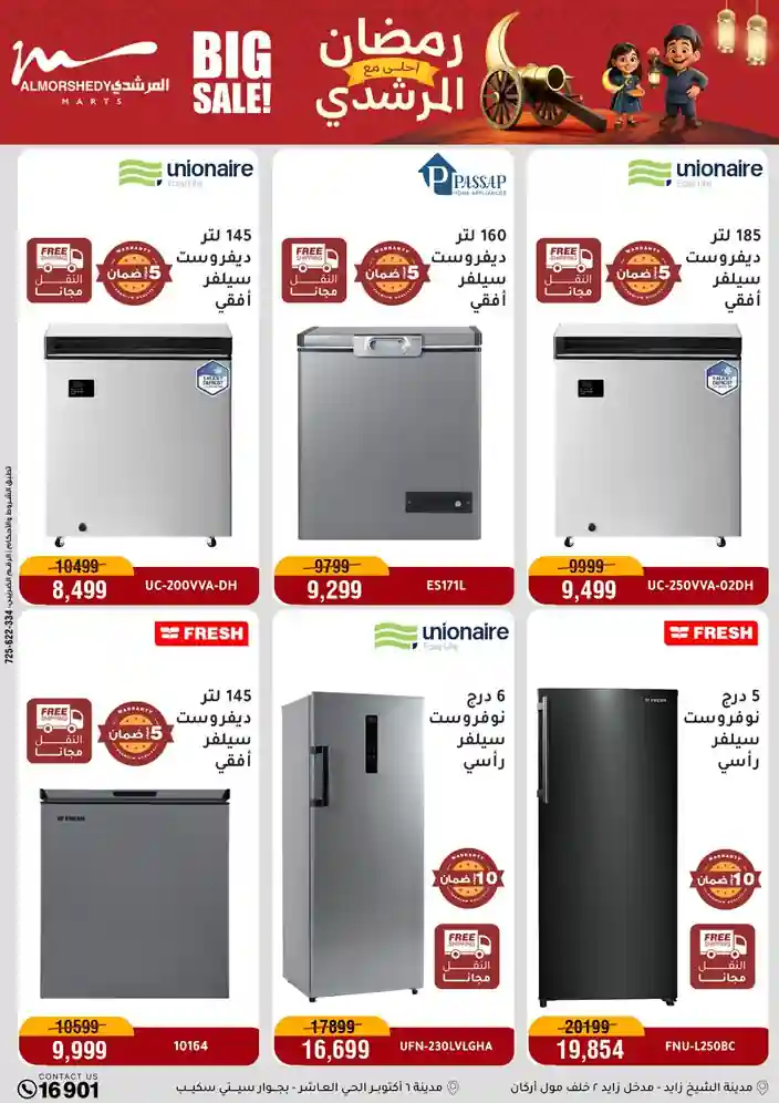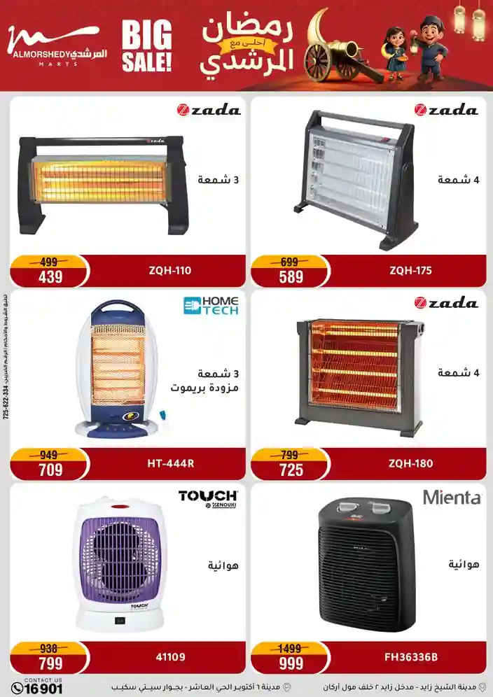 عروض جديدة من أسواق المرشدي مع اكبر مهرجان للتخفيضات في مصر خصومات حتى 70% وقسط براحتك بدون فوائد بأسعار العروض المخفضة على 12 شهر لحاملي بطاقة ائتمان CIB أو قسط براحتك مع VALU بدون مقدم حتى 60 شهر أو بدون مقدم وبدون فوائد مع نظام هاتريك وكمان النقل مجاني للقاهرة والجيزة والقليوبية على قسم الأجهزة الكهربائية والموبيليا والمراتب ( تطبق شروط المكان ) خصومات على جميع الأقسام أدوات منزلية – اجهزة كهربائية – مفروشات – موبيليا – نجف – سجاد – مراتب – ملابس رجالي وحريمي وأطفالي ومستلزمات ولعب الأطفال وجاليري وأقسام تانية كتير استمتع بالتسوق في أسواق المرشدي مع أكتر من 12 قسم و أكثر من 10,000 منتج يعني كل اللي بتحلم بيه عند المرشدي هتلاقيه
