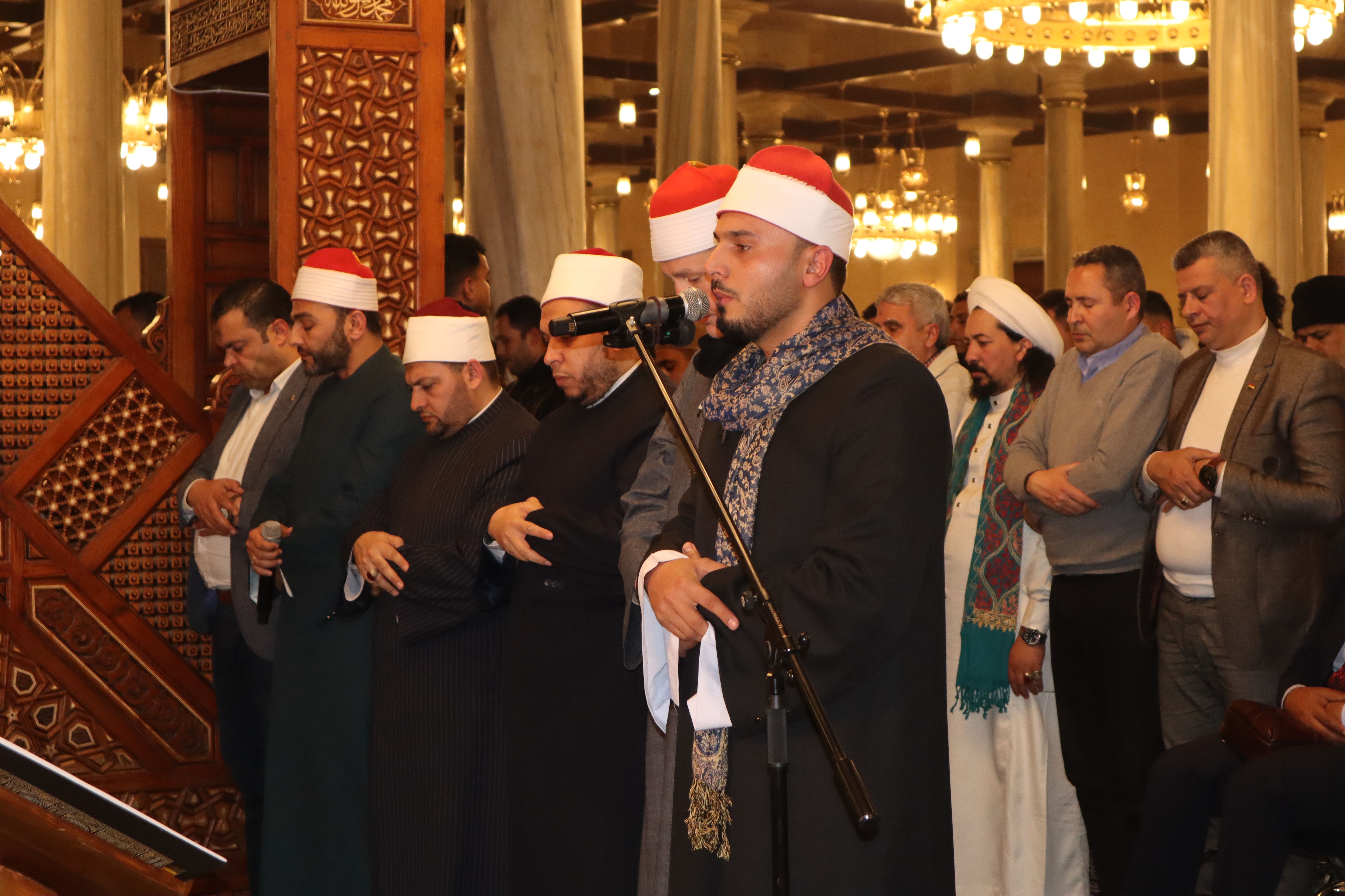 ففي مسجد الحسين أمَّ الشيخ حجاج هنداوي وفضيلة الشيخ محمد وفيق المصلين، وابتهال روحاني مؤثر للشيخ بلال مختار، أضفى على الأجواء مزيدًا من الصفاء والخشوع.