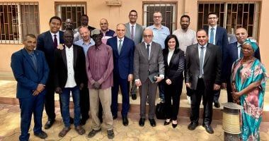 الإثنين، 23 فبراير 2026 01:51 مزار الدكتور هانى سويلم وزير الموارد المائية والرى مقر بعثة الرى المصرى بجنوب السودان، يرافقه حازم فوزى السفير المصري فى جنوب السودان، والوفد المرافق له.