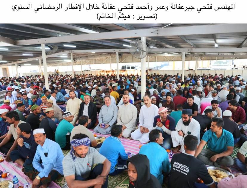 لأنه يراه وطناً ثانياً له، وفر له الأرضية الخصبة لبدء نجاحه في عالم الأعمال، والذي تحقق على أرض دولة الإمارات، أرض الخير، وتحديداً في إمارة الشارقة، منذ ما يزيد عن 40 عاماً، يواصل المهندس فتحي جبر عفانة، الرئيس التنفيذي لشركة «فاست» لمقاولات البناء، وللعام العاشر على التوالي تنظيم مأدبة إفطار يومياً لنحو 4 آلاف عامل، في مسجد البشير، الذي بناه عفانة عن روح والدته رحمها الله، في المنطقة الصناعية 12 والمناطق المجاورة في الشارقة.