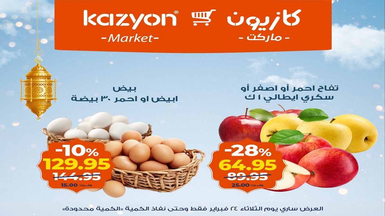 العروض الجديدة من كازيون تسرى من الثلاثاء 24 فبراير 2026 عرض اليوم الواحد فى جميع فروع كازيون