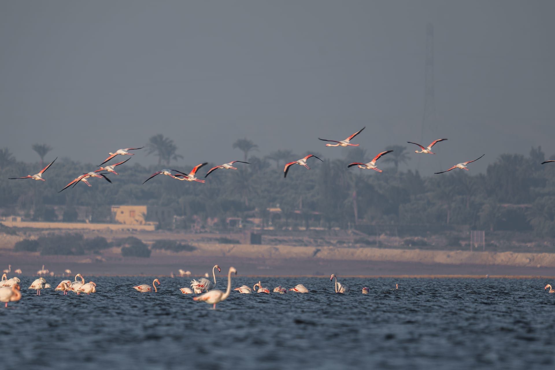 في مصر، وتحديدا ببحيرة قارون بمحافظة الفيوم، وثقت عدسة المصور المصري، أحمد عماد، مشاهد خلابة لطيور الفلامنجو، التي تُعرف باسم طيور النحام الوردي.