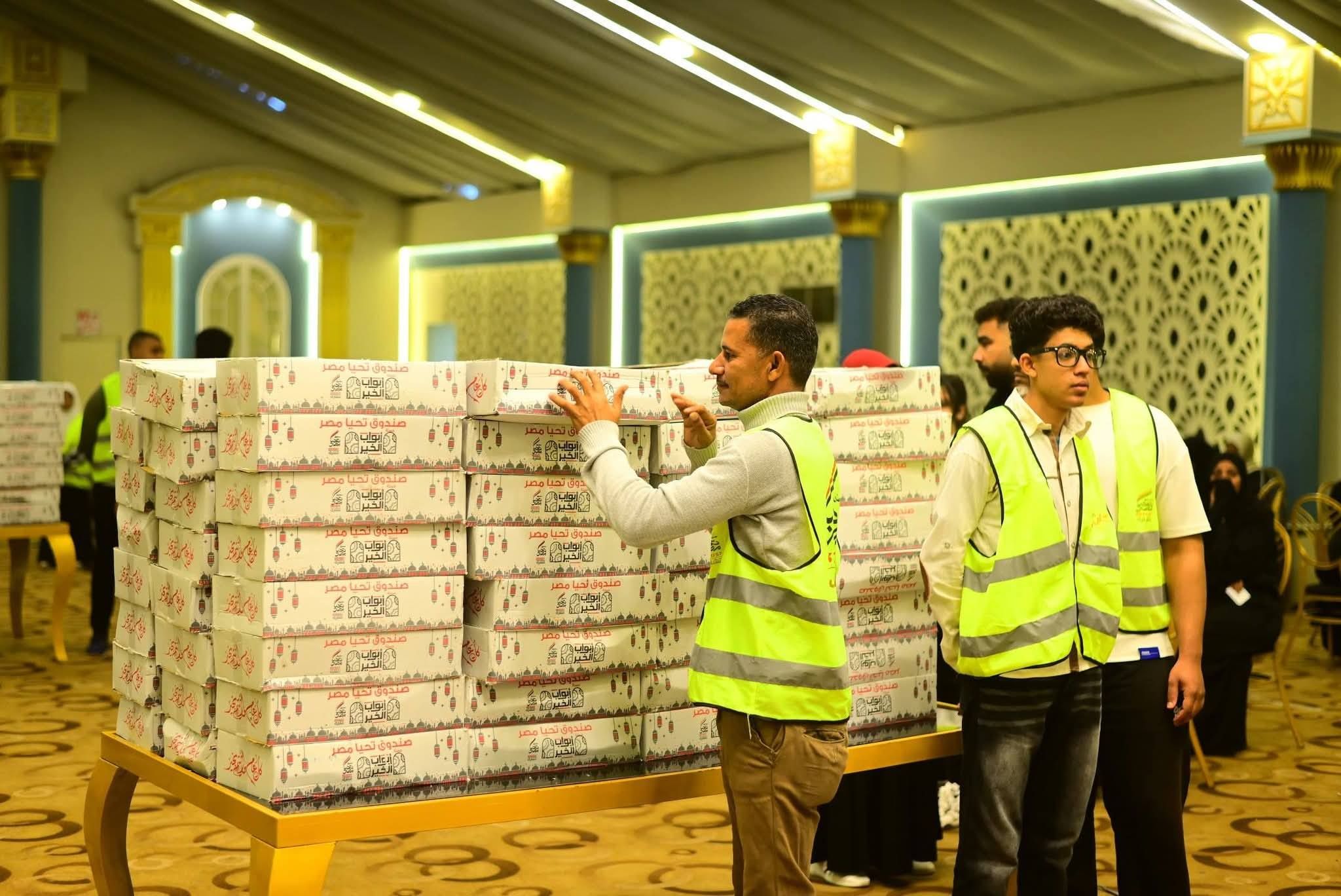 تجمع شبابى مميز لبدء توزيع كراتين المواد الغذائية على الأسر الأكثر استحقاقاً بالأقصر