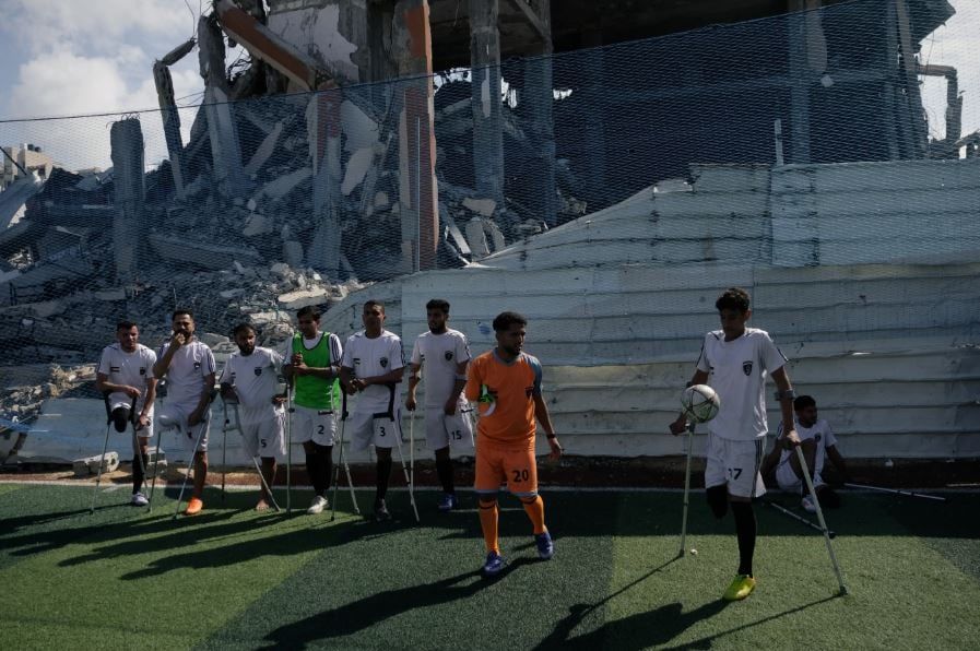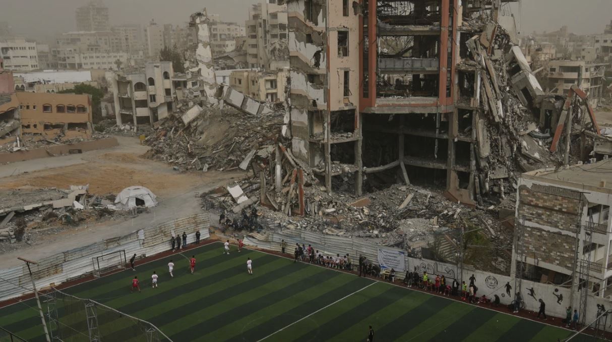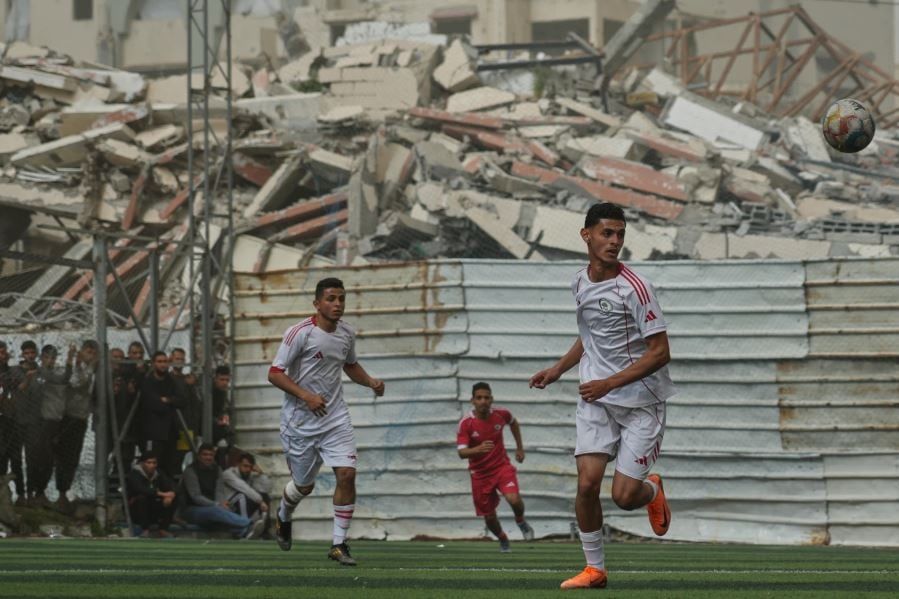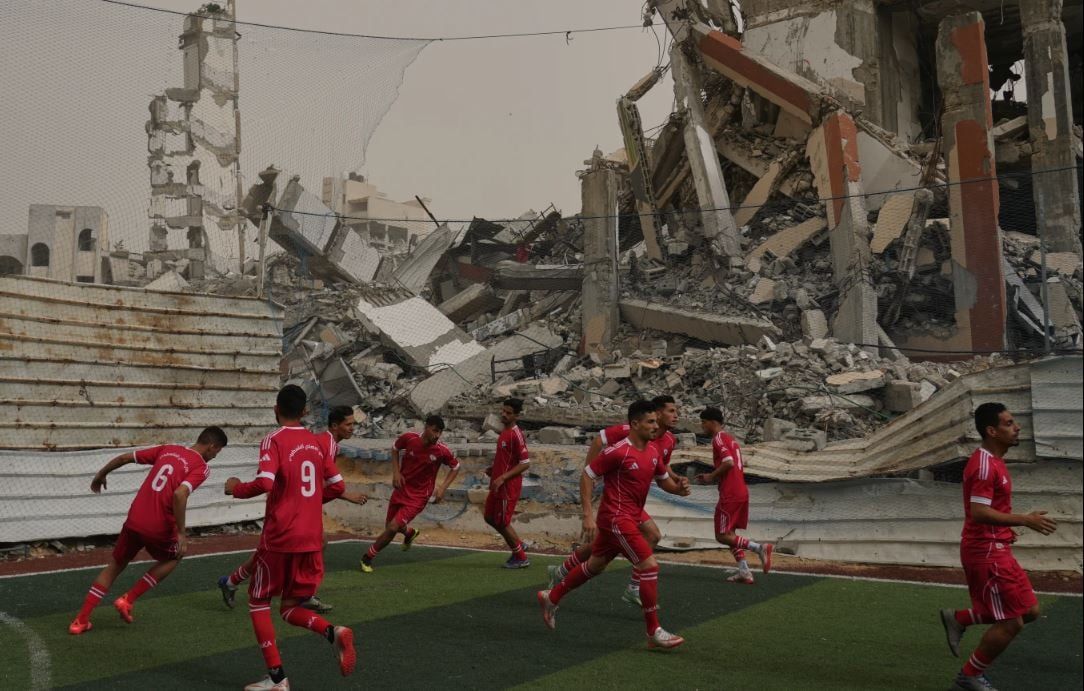 تم تدمير ملعب كرة القدم الرئيسي في غزة خلال حرب إسرائيل وحماس، وهو الآن بمثابة مخيم خيام للعائلات النازحة، أما في مخيم جباليا، فقد أنشأ الاتحاد الفلسطيني لكرة القدم مساحة جديدة، حيث أزالوا الأنقاض، وفرشوا أرضية عشب صناعي، وأقاموا سياجاً بجوار بقايا المباني المدمرة.