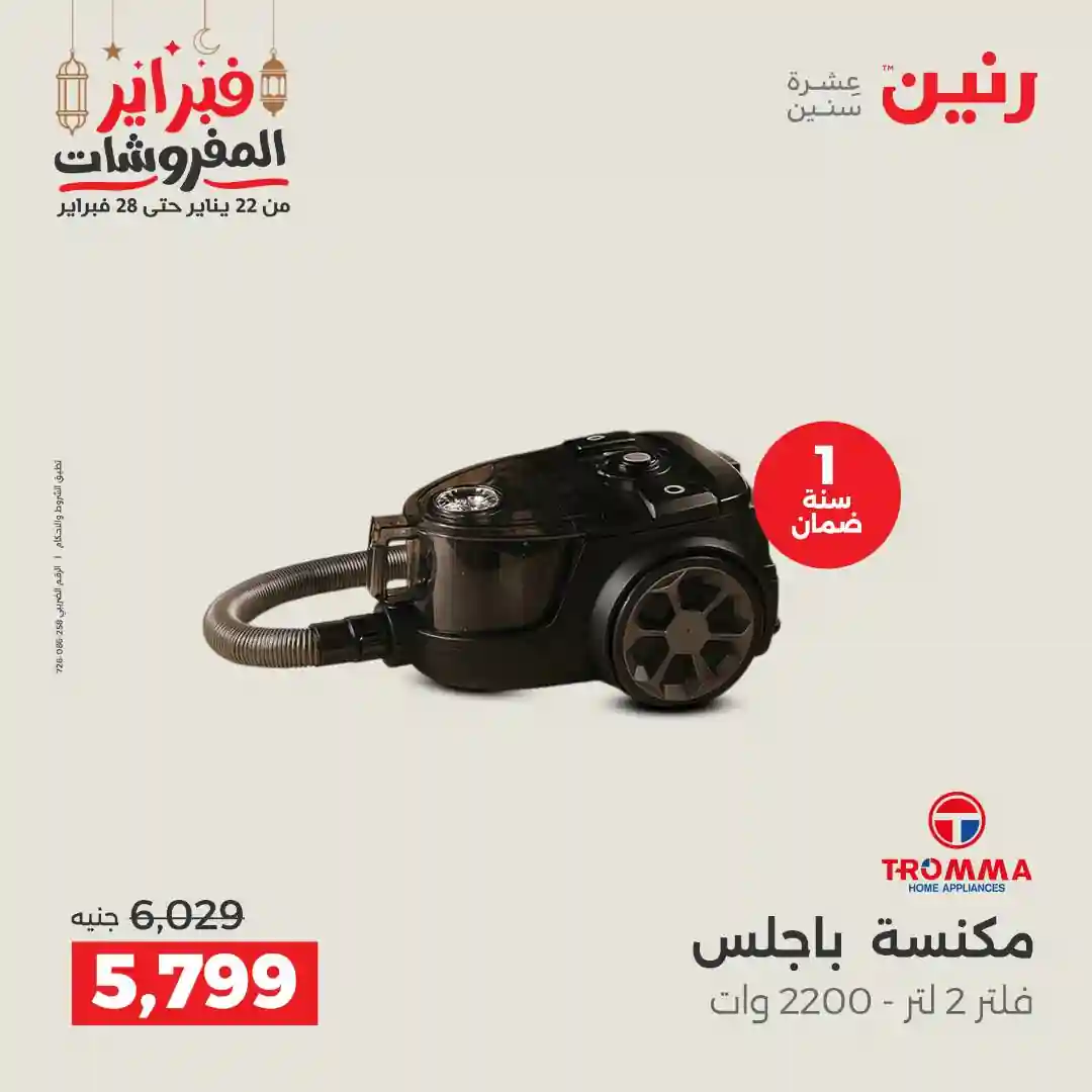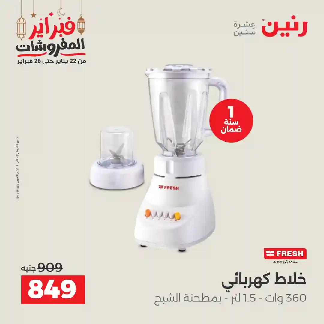 تسرى عروض رنين من يوم الخميس للسبت 26 – 27 – 28 فبراير 2026 للاجهزة الكهربائية بجميع الفروع