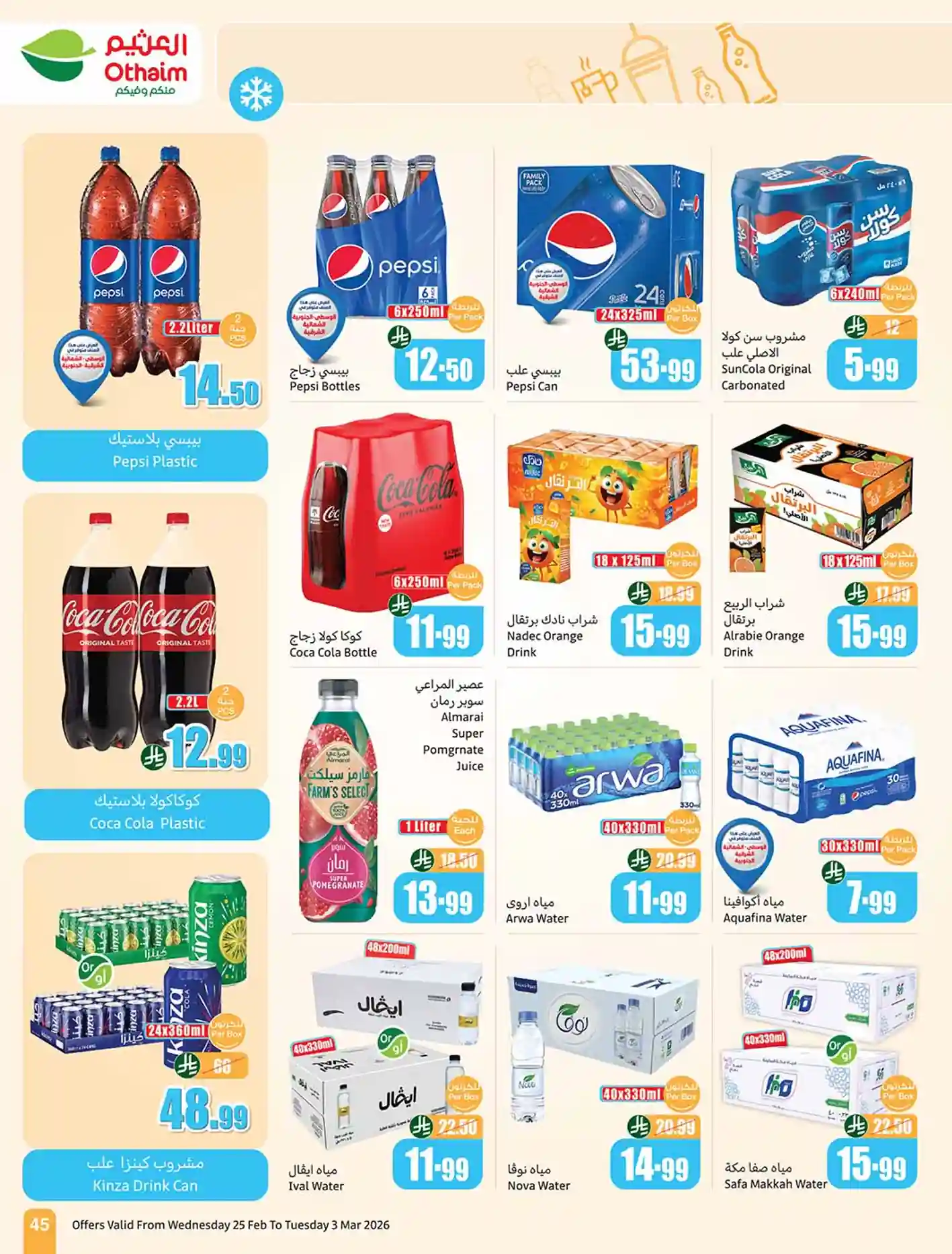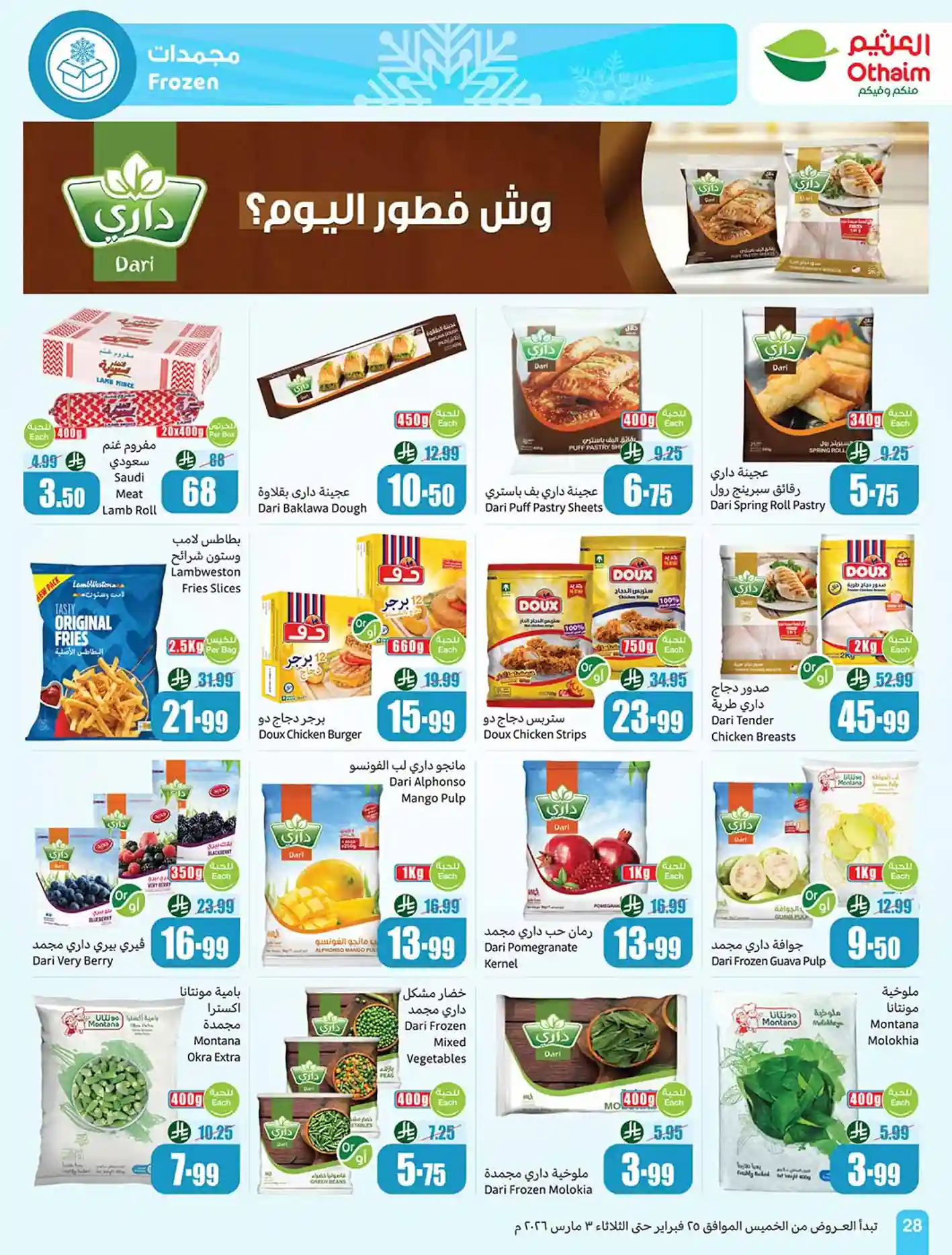 عروض نت تقدم لكم احدث عروض العثيم السعودية اليوم الجديدة فى صفحة واحدة – العروض الاسبوعية من اسواق العثيم هايبر ماركت – و ذلك من 25 فبراير حتى 3 مارس 2026 او حتى نفاذ الكمية من اسواق عبد الله العثيم السعودية بجميع الفروع.