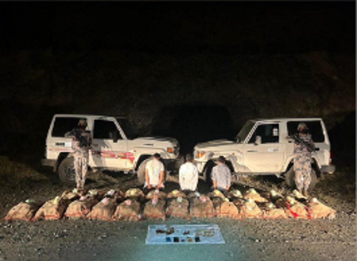 أعلنت الدوريات البرية لحرس الحدود في قطاع الدائر بمنطقة جازان القبض على (3) مواطنين، لتهريبهم (500) كيلوجرام من نبات القات المخدر