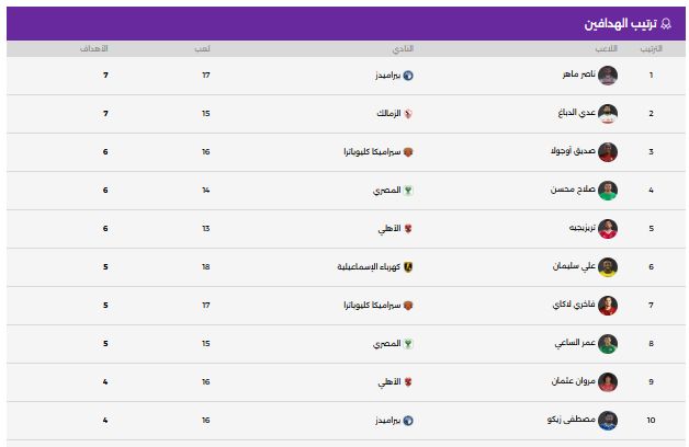جدول ترتيب هدافى الدورى المصرىجدول ترتيب الهدافين