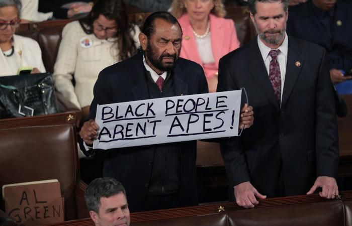 belbalady "السود ليسوا قرودًا".. إخراج نائب ديمقراطي رفع لافتة احتجاجية خلال إلقاء ترامب خطاب حالة الاتحاد