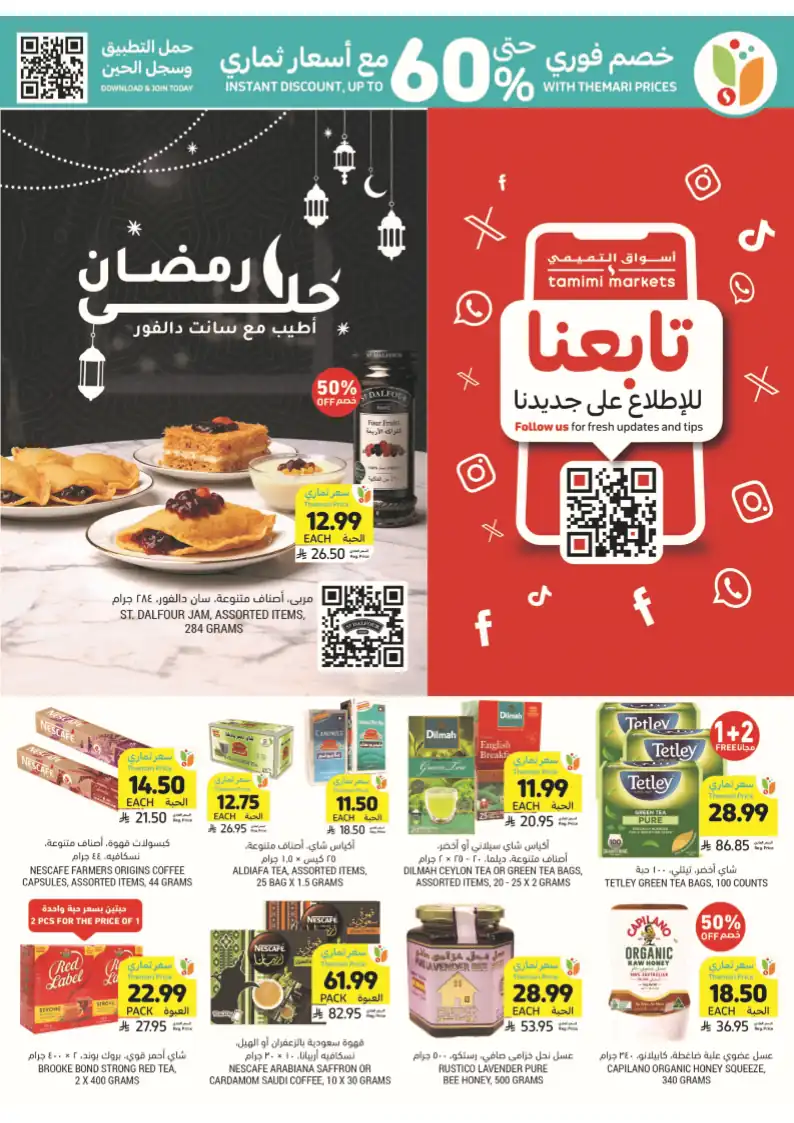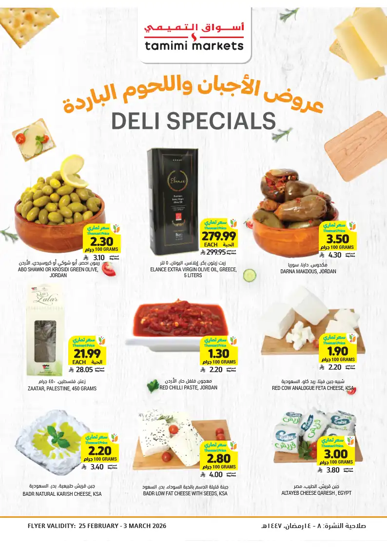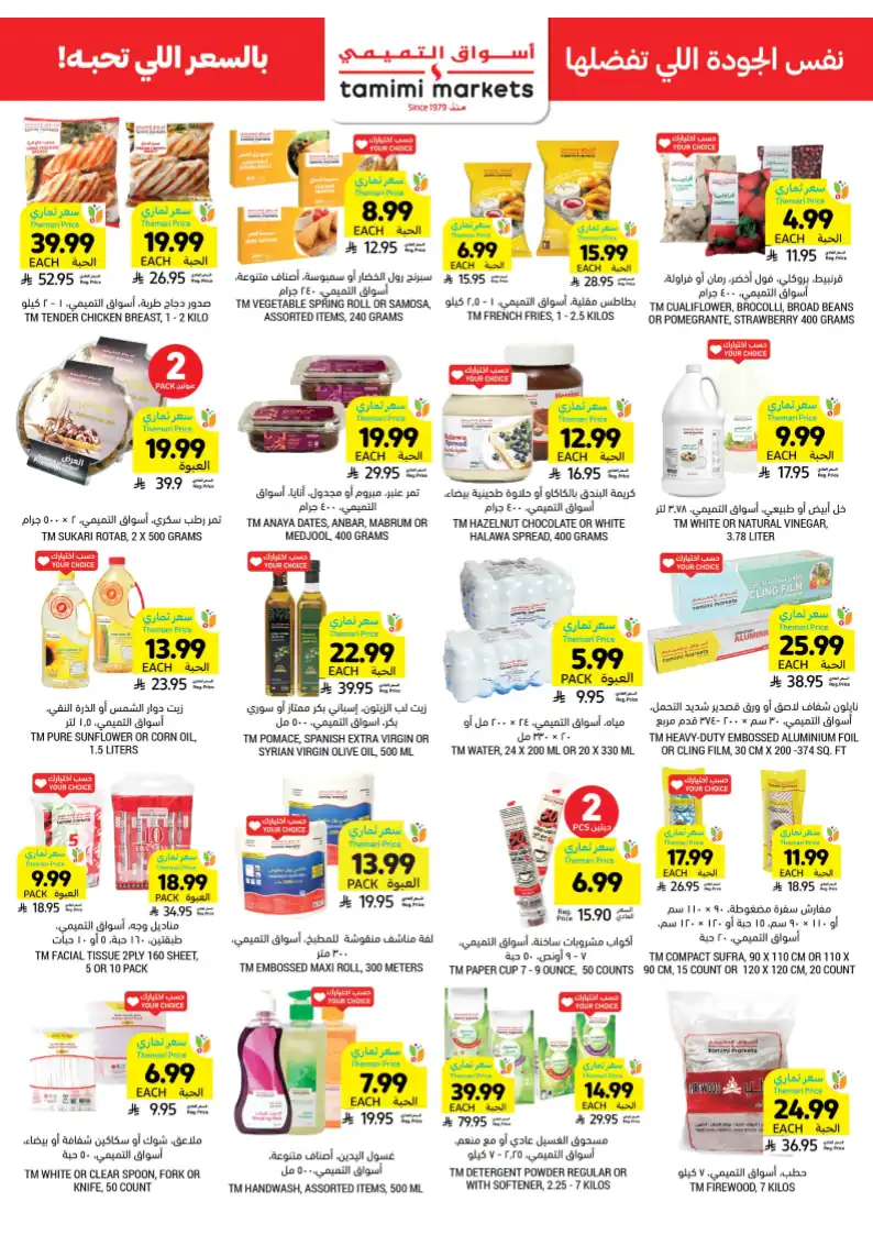 عروض التميمى اليوم سارية من 25 فبراير حتى 3 مارس 2026 العروض الاسبوعية او حتى نفاذ الكمية فى فروع التميمى الدمام و التميمى الجبيل و التميمى حفر الباطن و التميمى الخبر و التميمى الاحساء و التميمى الظهران و التميمى الرياض و التميمى جدة و التميمى القصيم.