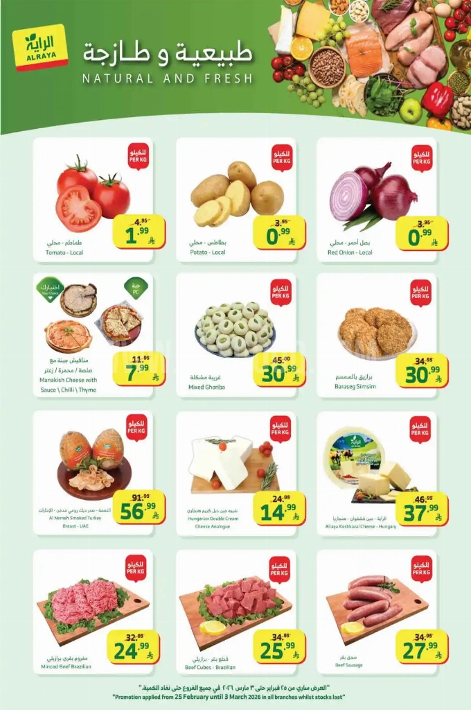 عروض الراية السعودية اليوم سارية فقط من 25 فبراير حتى 3 مارس 2026 فى جميع فروع اسواق الراية جدة و اسواق الراية الجنوبية.