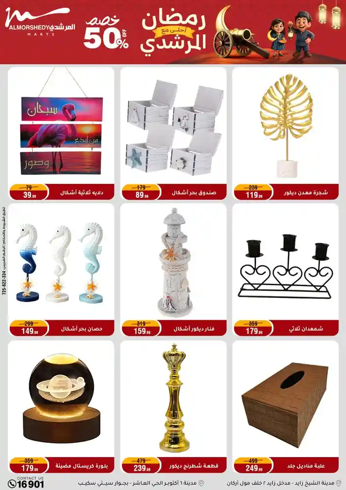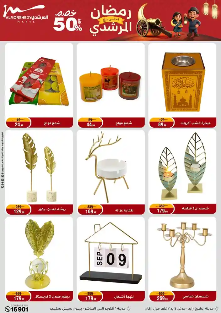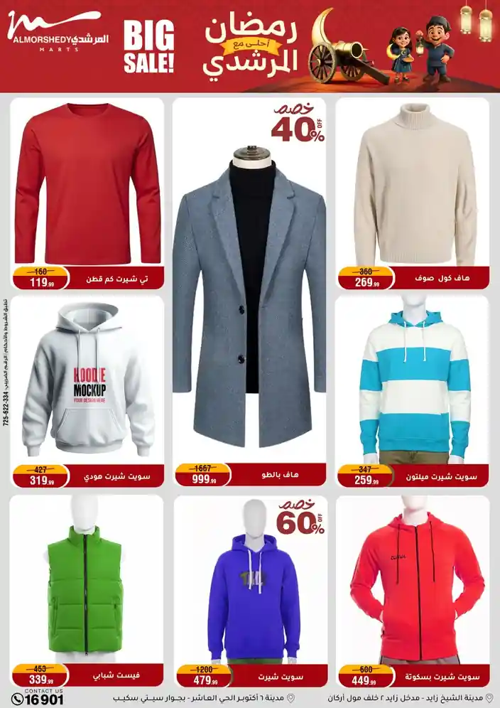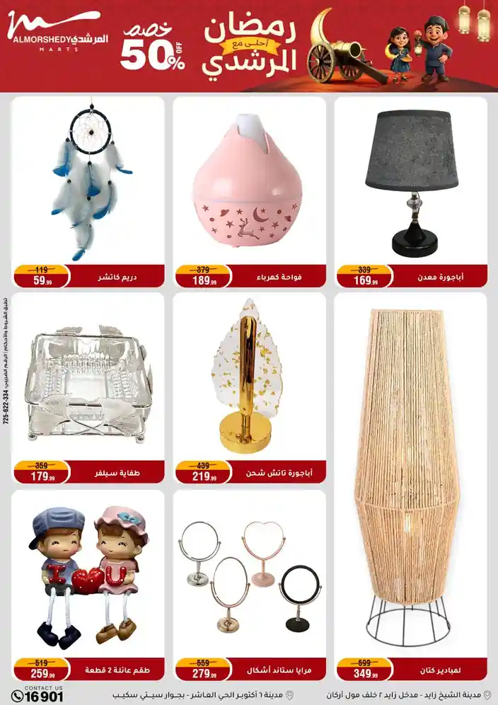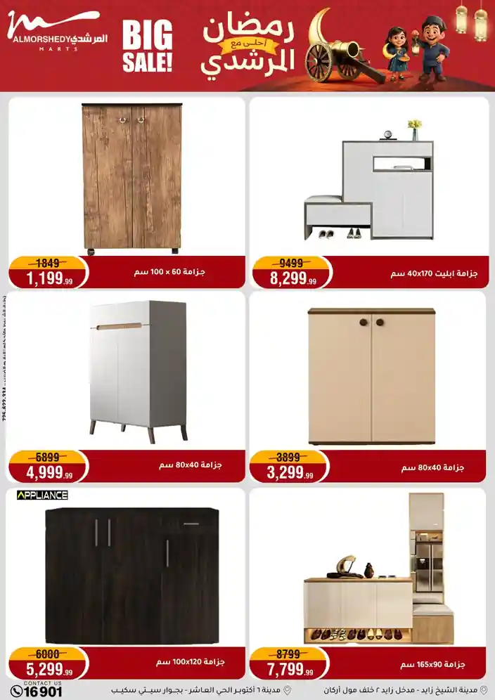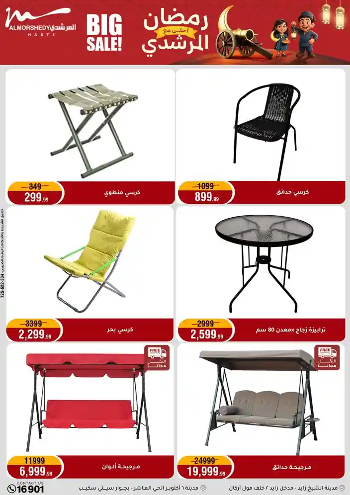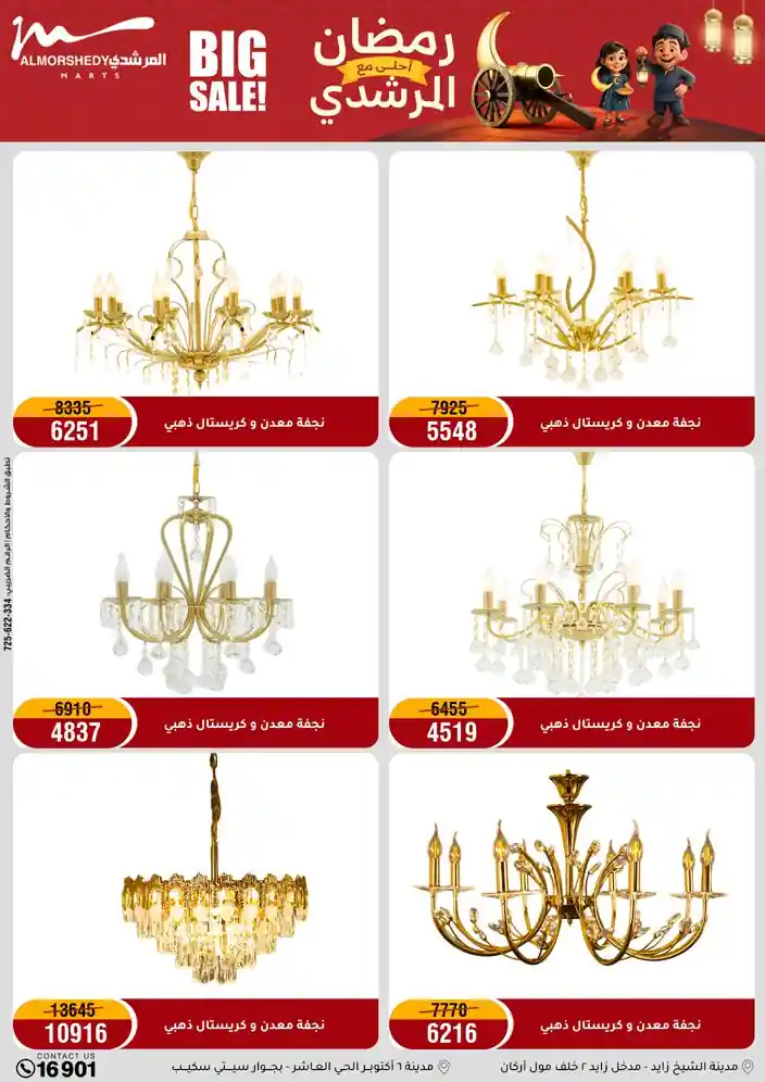 عروض جديدة من أسواق المرشدي مع اكبر مهرجان للتخفيضات في مصر خصومات حتى 70% وقسط براحتك بدون فوائد بأسعار العروض المخفضة على 12 شهر لحاملي بطاقة ائتمان CIB أو قسط براحتك مع VALU بدون مقدم حتى 60 شهر أو بدون مقدم وبدون فوائد مع نظام هاتريك وكمان النقل مجاني للقاهرة والجيزة والقليوبية على قسم الأجهزة الكهربائية والموبيليا والمراتب ( تطبق شروط المكان ) خصومات على جميع الأقسام أدوات منزلية – اجهزة كهربائية – مفروشات – موبيليا – نجف – سجاد – مراتب – ملابس رجالي وحريمي وأطفالي ومستلزمات ولعب الأطفال وجاليري وأقسام تانية كتير استمتع بالتسوق في أسواق المرشدي مع أكتر من 12 قسم و أكثر من 10,000 منتج يعني كل اللي بتحلم بيه عند المرشدي هتلاقيه