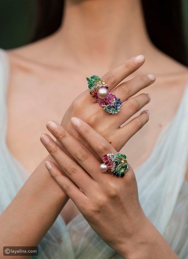 - أحجار مثل العقيق، الزمرد، واللؤلؤ تمنح الإطلالة بعدًا فخمًا، خاصة عند استخدامها في قطع محدودة مثل أقراط بارزة أو خاتم Statement واحد.