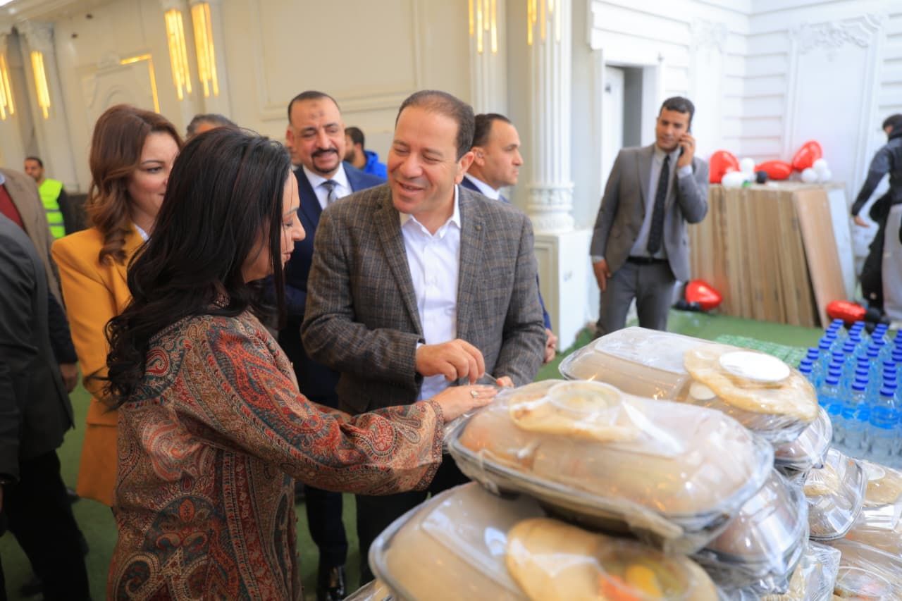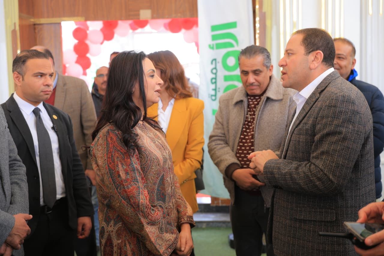 الدكتورة مايا مرسى وزيرة التضامن ومحمود فؤاد خلال تفقد مقر إطعام جمعية الأورمان بإمبابة