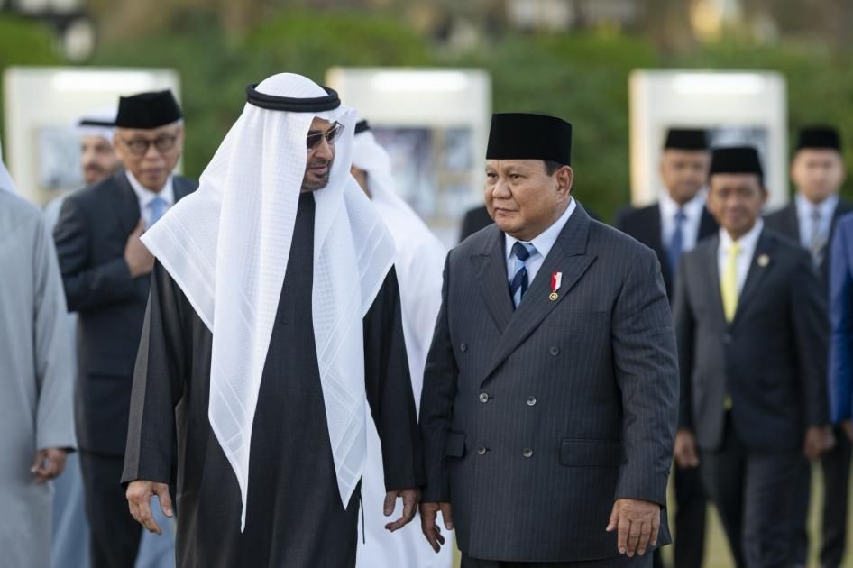 بحث صاحب السموّ الشيخ محمد بن زايد آل نهيان رئيس الدولة ،حفظه الله، وبرابوو سوبيانتو رئيس جمهورية إندونيسيا اليوم مختلف جوانب العلاقات الثنائية، وسبل تعزيزها خاصة في المجالات التنموية، وفي مقدمتها الاقتصاد والتجارة والطاقة المتجددة والتكنولوجيا والذكاء الاصطناعي والاستدامة والأمن الغذائي والثقافة وغيرها، وذلك في إطار الشراكة الاقتصادية الشاملة بين البلدين.