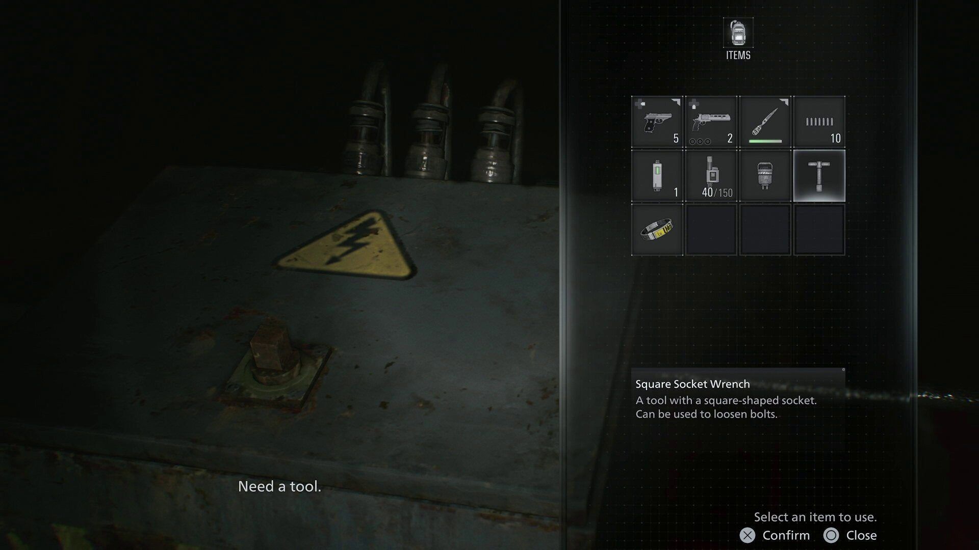 ادخل قسم المعالجة واجمع مفتاح الرافعة الشوكية من الجثة. استخدمه على الرافعة هنا لدخول غرفة تحتوي على بعض المستلزمات وخريطة طابق القبو وحقيبة صغيرة. يوجد أيضًا المقبس المشترك الثالث هنا، لكن لا يمكن أخذه بعد للأسف.