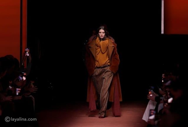 - التنسيق الطبقي كان محور العرض، لكنه لم يكن عشوائيًا. المعاطف الكبيرة تغطي السترات القصيرة، فوق البليزرات، مع إدخال الكارديجان الطويل والأوشحة بطريقة مدروسة. يبدو للوهلة الأولى أن ارتداء هذه الطبقات عفوي، لكن في الواقع كل قطعة كانت موضوعه لتكمل الأخرى بصريًا ووظيفيًا.